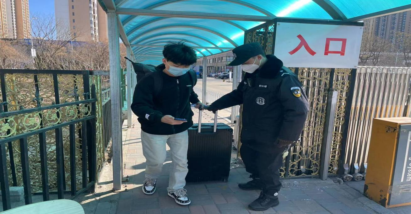 保卫处严格遵循春季学生开学返校的安保工作方案,其中师生返校时各校门的管理计划为安排工作的重中之重。为了保障学校返校师生有序、安全、快速的顺利返校,滨海职业学院分北门和东门两个门口作为返校通道。学生返校时期,科学部署学院北门、东门的人员安排、点位布置,做好引导、检查等工作。