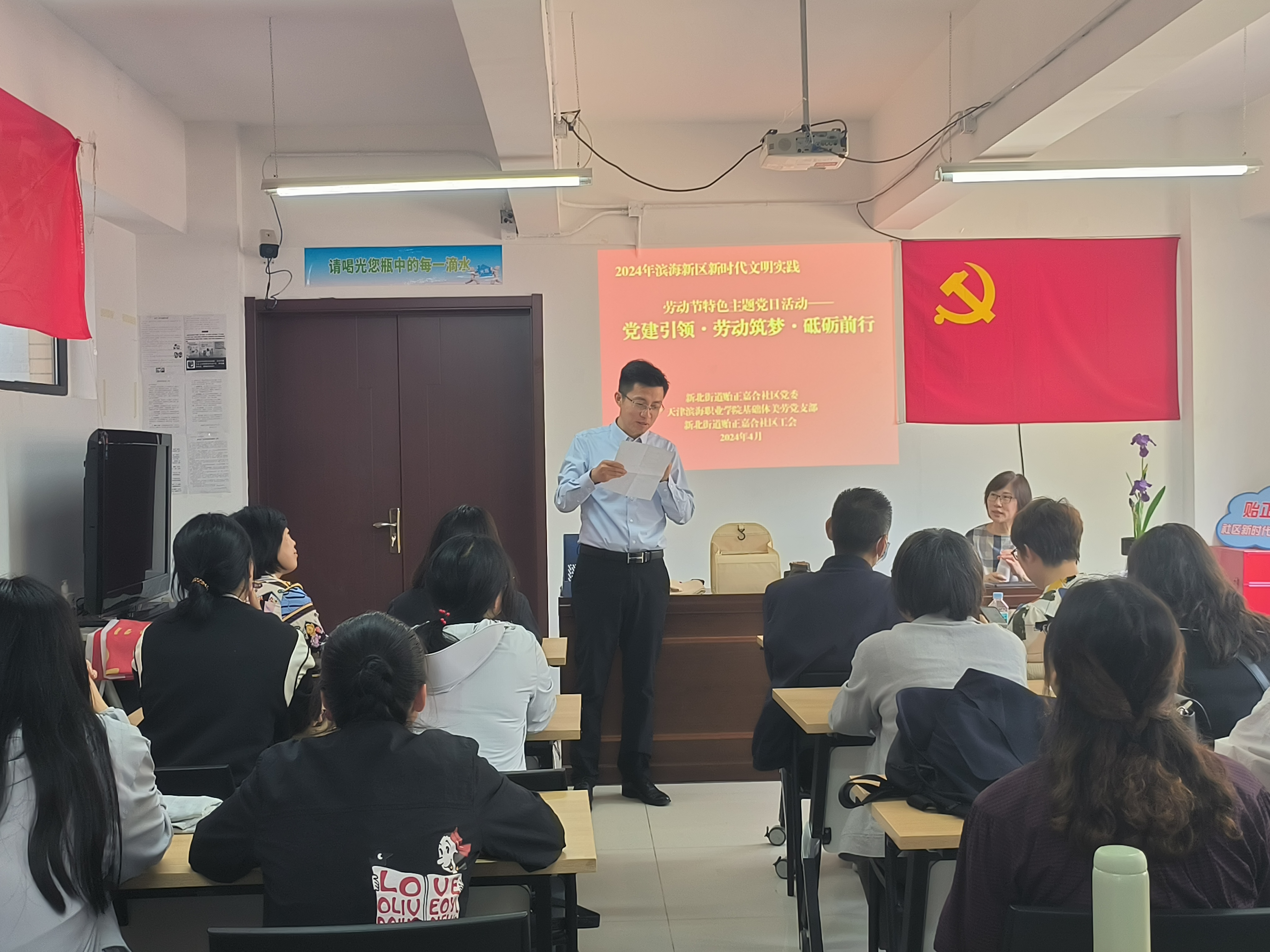 值此2024 年五一劳动节来临之际,4月25日下午,必赢官网体美劳中心和基础教学部来到贻正嘉和社区居民活动中心,开展了以“党建引领·劳动筑梦·砥砺前行”为主题的党日实践活动。基础体美劳党支部全体党员教师和部分学生代表以及社区居民参与了本次实践活动,本次活动由体美劳中心副主任王俊杰主持。此次活动旨在通过党员的先锋模范作用,引领居民热爱劳动,营造劳动光荣的社会风尚和精益求精的敬业风气。