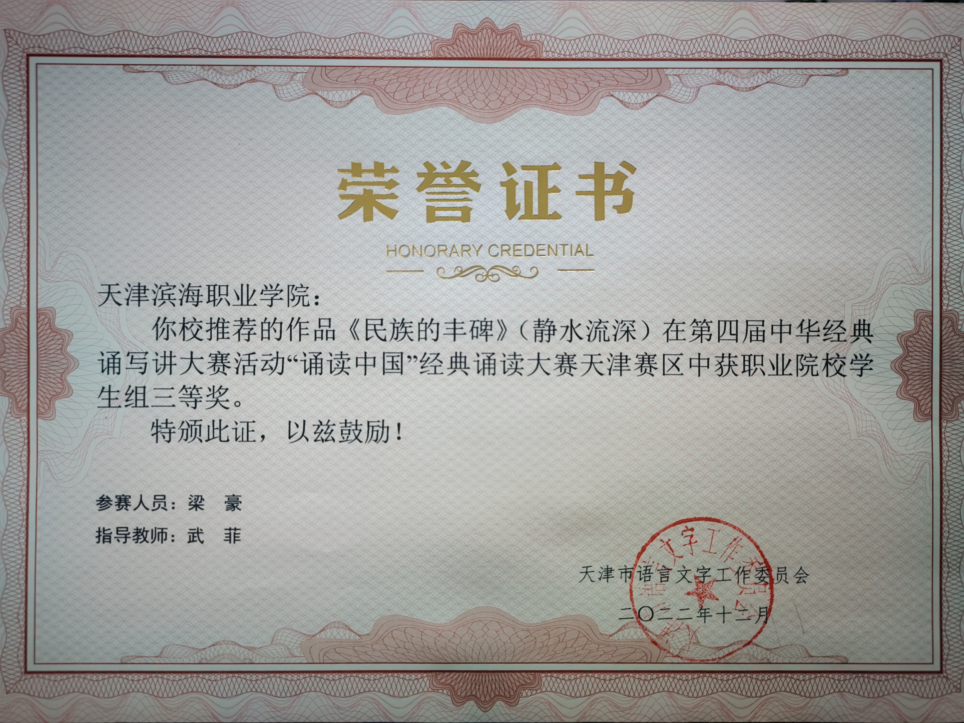 根据《教育部办公厅关于举办第四届中华经典诵写讲大赛的通知》(教语用厅函〔2022〕1号)要求,天津市语委组织举办了第四届中华经典诵写讲大赛。