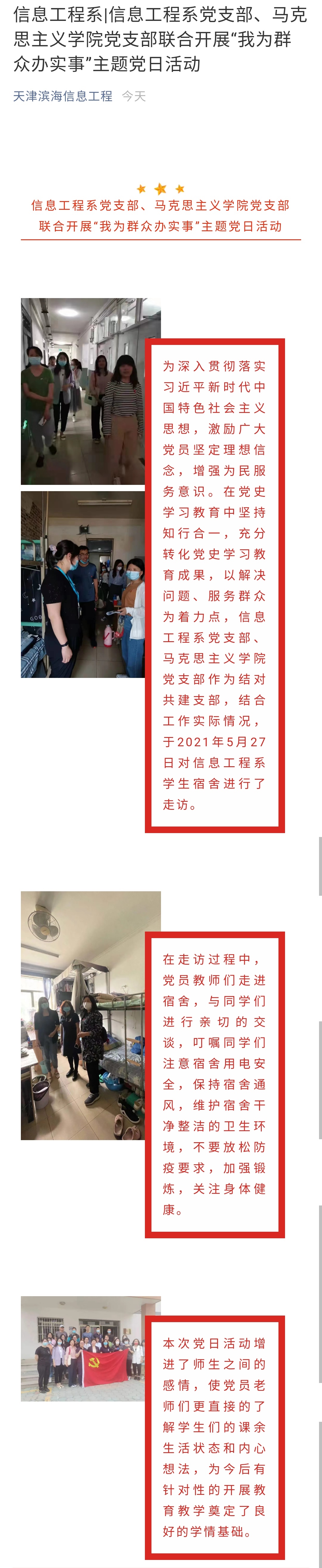 信息工程系党支部与马克思主义学院党支部 联合开展“我为群众办实事”主题当日活动