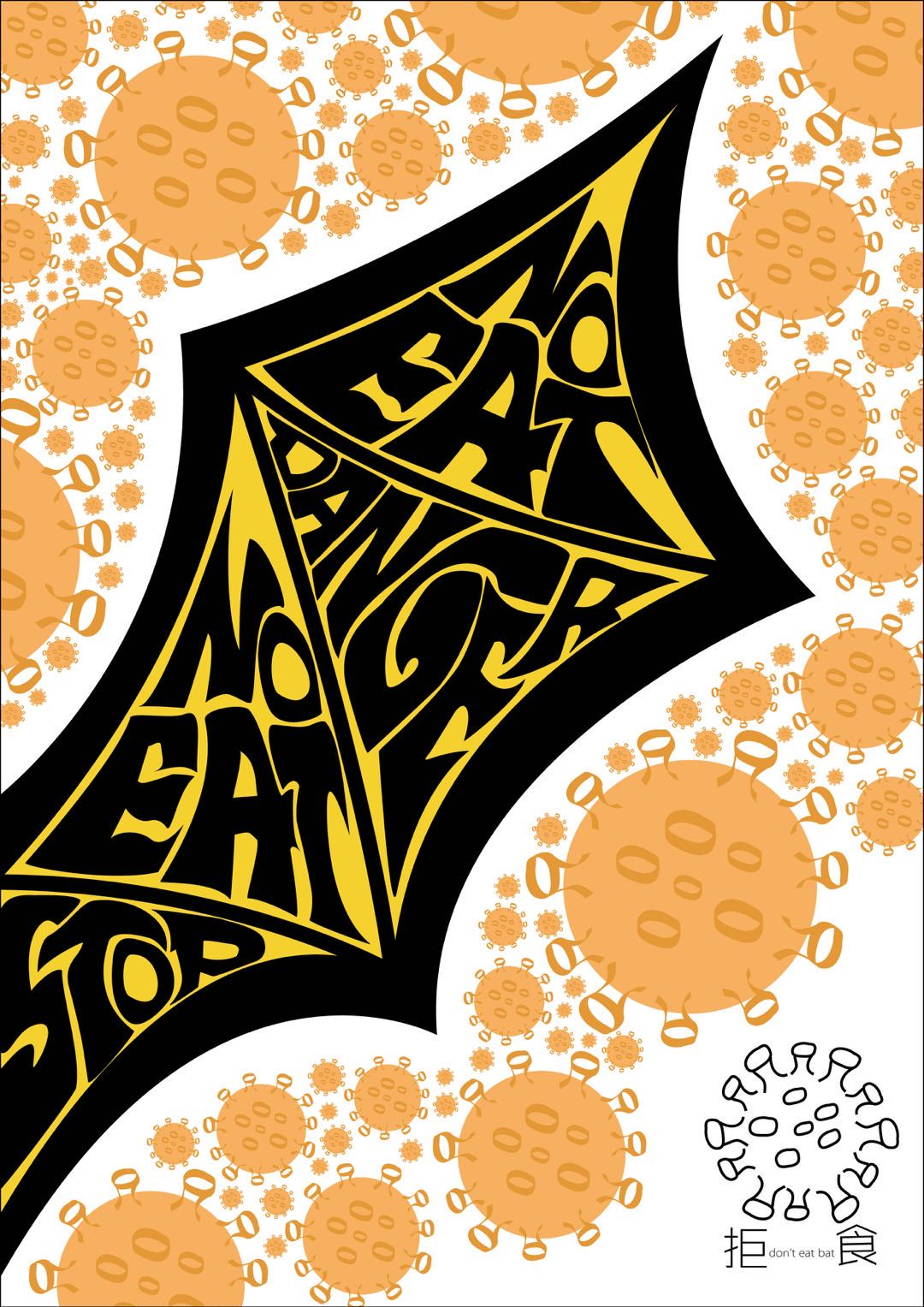 李欣老师“武汉加油”设计说明:新冠病毒侵入人类,让我们进行深刻反思。人类要禁止杀戮、禁止食用野生动物,因为动物是人类最好的朋友。