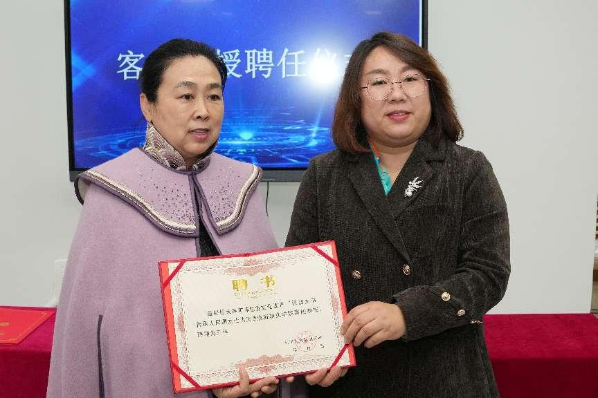 数字创意学院金鑫书记院长为天津市非遗“汉沽女书”传承人颁发客座教授聘书