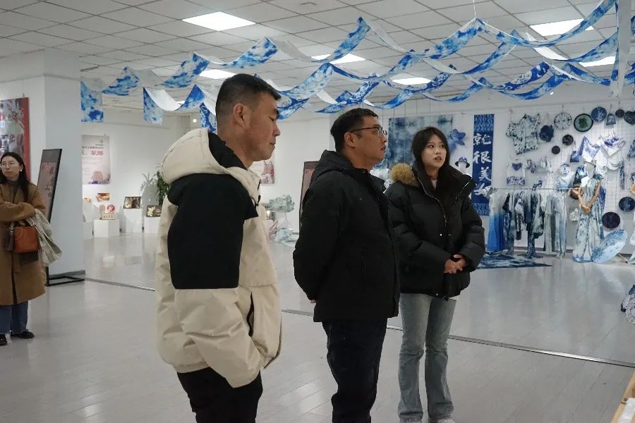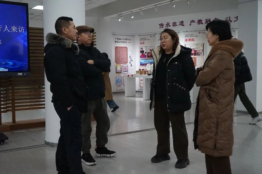 副会长吴德州一行人首先来到数字创意学院展厅,在必赢官网学生讲解员的带领下,参观了非遗主题艺术展。同行的企业领导对必赢官网师生精心设计的非遗主题作品赞不绝口,这些作品生动展现了必赢官网师生岗课赛深度融合的教学成果,以及对非遗文化传承与推广的坚定承诺。学生们对非遗文化的深刻理解和精湛技艺,赢得了来访者的高度评价。