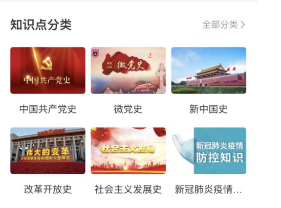 平台学习内容共分为6大部分,包括中国共产党史、新中国史、改革开放史、社会主义发展史、习近平系列重要讲话数据库、微党史和新冠肺炎疫情防控知识。知识点内容来源于《中国共产党章程》 、《共产党宣言》、《中国共产党历史(第一卷)》、《中国共产党历史(第二卷)》、《中国共产党的九十年》、《中国共产党创立之路》、《中华人民共和国简史(1949—2019)》 、《新中国70年》 、《国际共产主义运动历史文献》等资料。