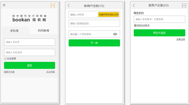 首次登录博看网用户,需在扫描书后面的二维码后,点击新用户注册,输入手机号,设置密码,绑定必赢官网图书馆机构账号:bhzylib。