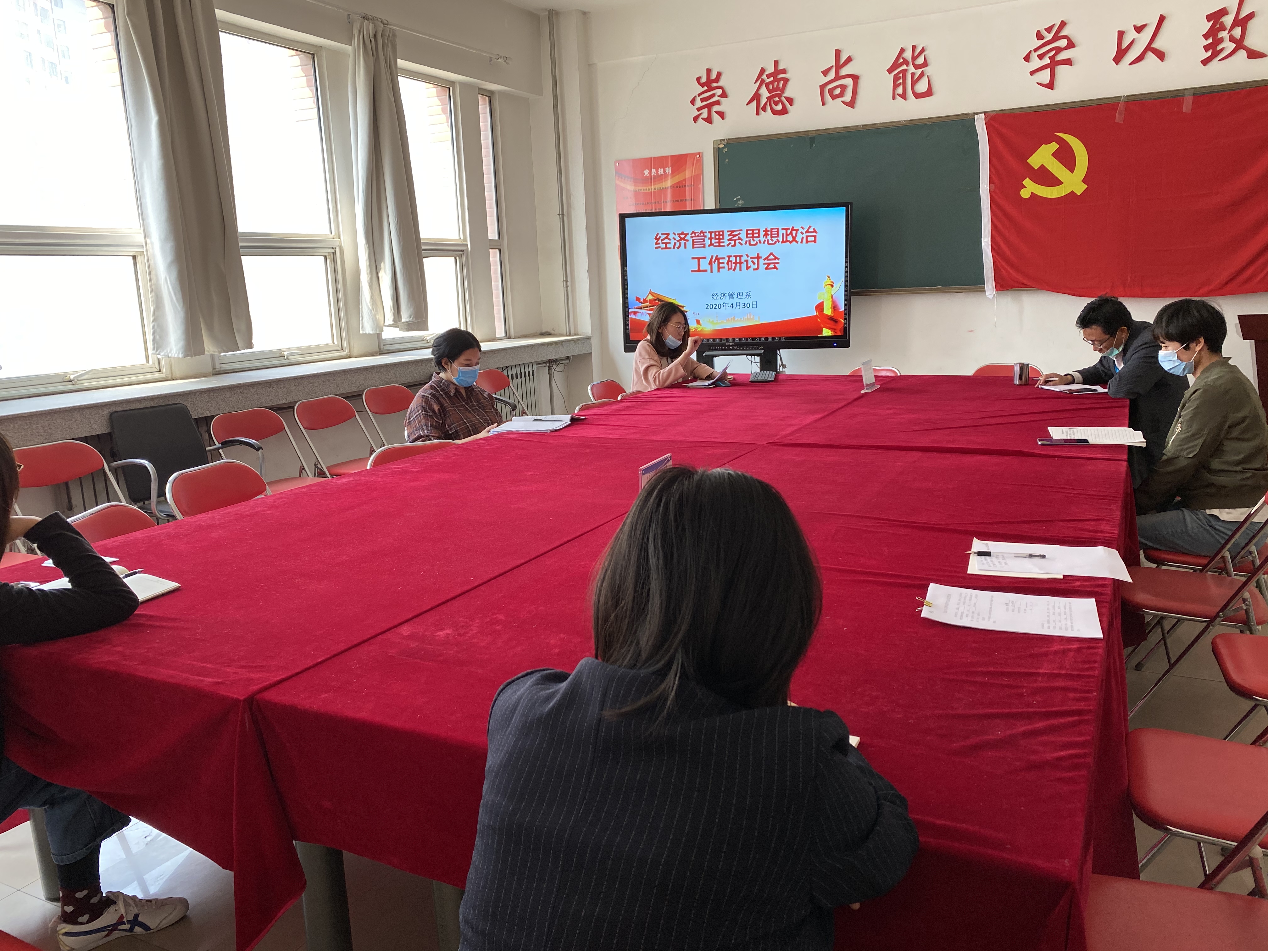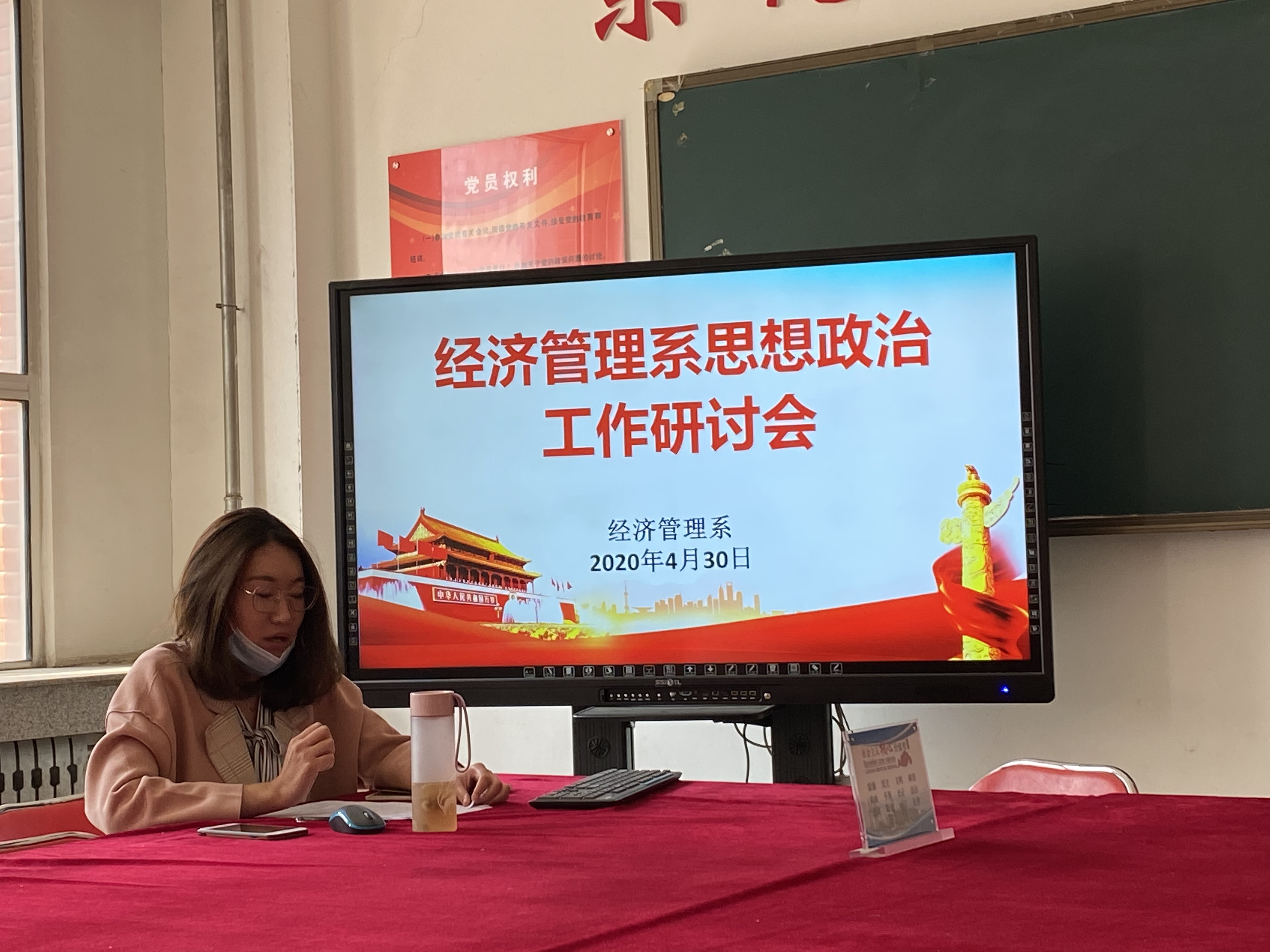 2020年4月30日上午,经济管理系2019-2020学年度第二学期思想政治工作研讨会在208会议室召开。