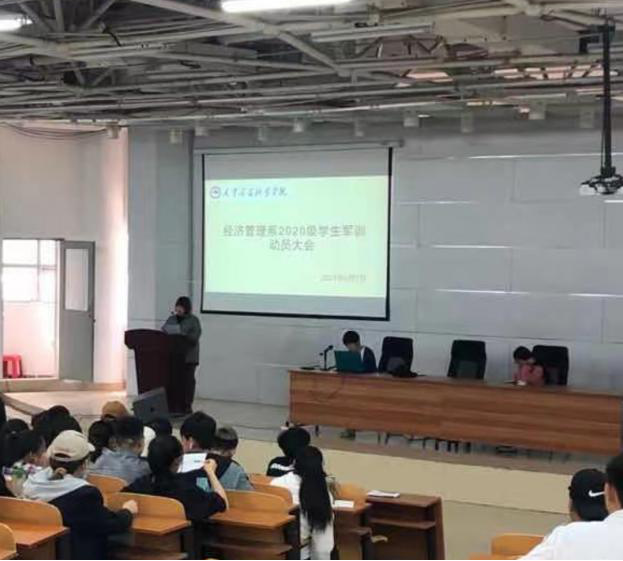 2021年5月7日,经济管理系在第二报告厅召开2020级学生军训动员大会,会议由系团总支书记崔慧娥主持,参加大会的有系党支部副书记副主任窦爱玲、辅导员李贺昀及2020级全体学生。