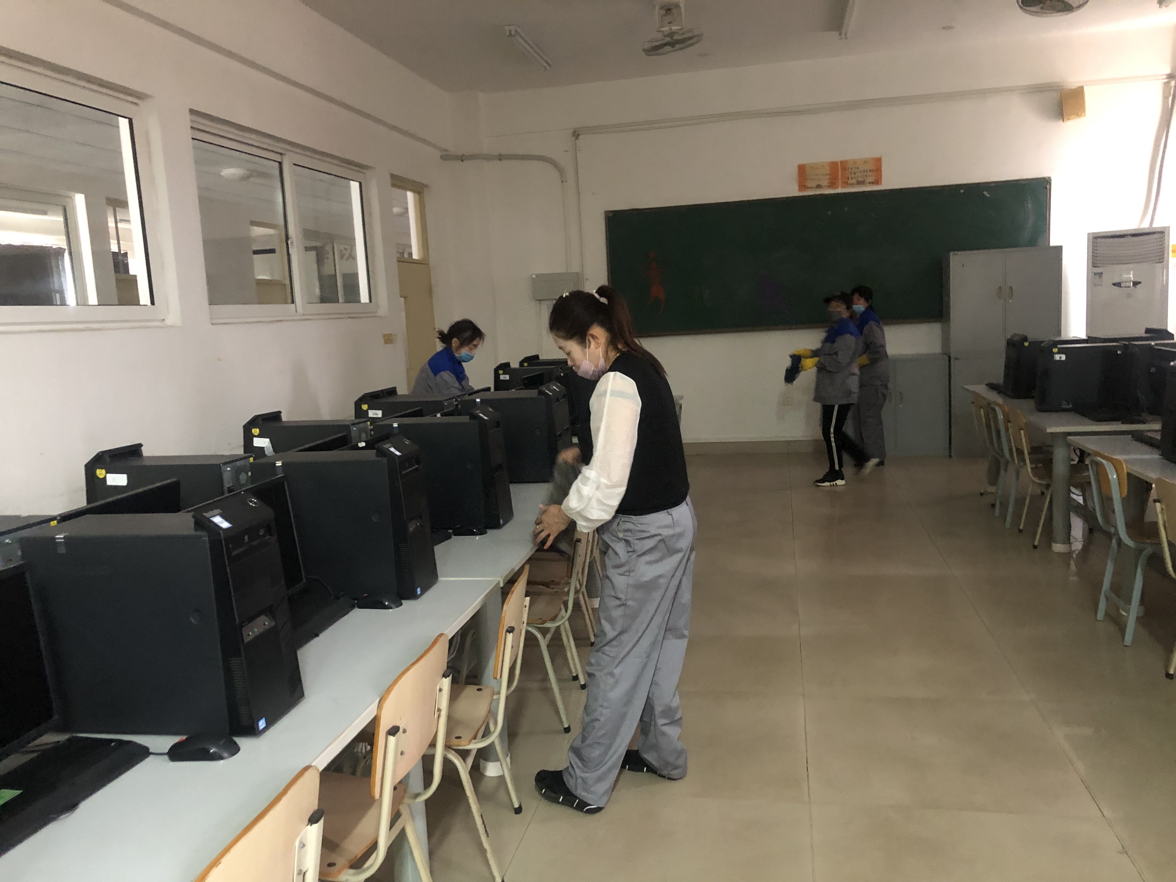 针对本次活动,学院疫情防控工作指挥部办公室提前制定了相应方案,划分劳动区域,清整工作完成后由各系部根据7S管理要求完成自评。为响应学院号召,经济管理系部分党员同志、坐班教师及学院物业人员,一同参与本次卫生清整活动,9:00参与人员准时到位,按照先前工作分工有序对系部教室、实训室、公共区间等进行卫生清理、安全检查,无论是从清扫地面、清理课桌内垃圾再到擦拭廊道门、窗台、窗户等等,不放过任何一个卫生死角,进行彻底清理,营造了干净整洁的教学环境。