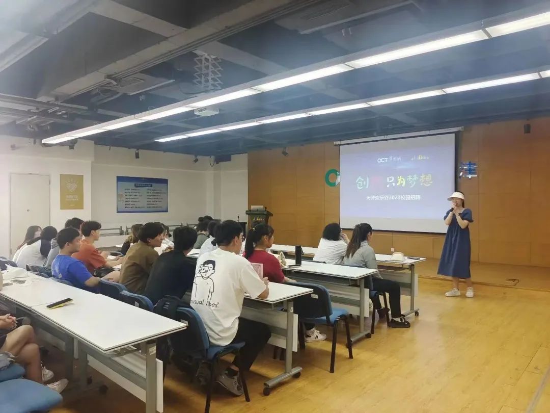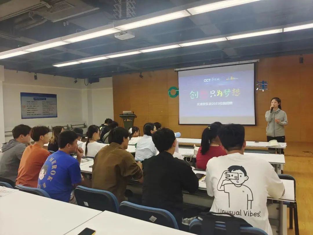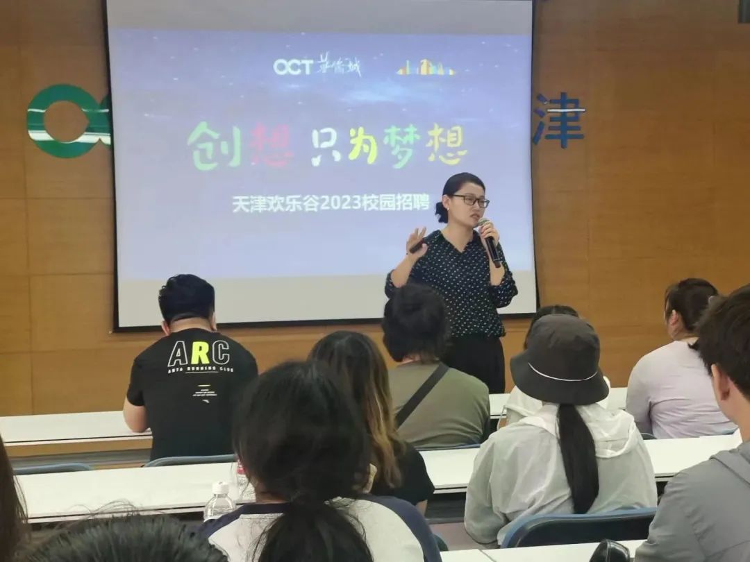 在企业宣讲过程中,培训老师详细介绍了华侨城集团发展历程、业务范围、天津欢乐谷园区状况以及部门设置等内容,并对同学们今后学习和职业规划提出了殷切希望。