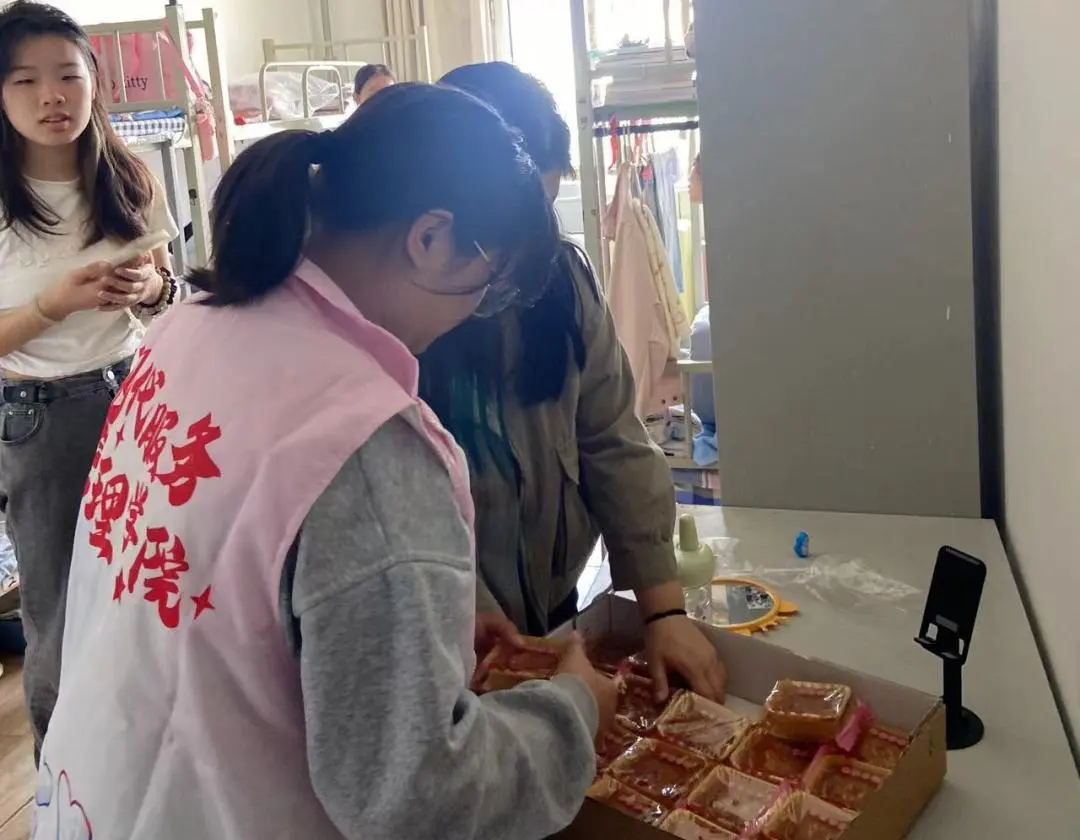 在此中秋与国庆佳节之际,愿每一名学生都能感受到这份温暖和关爱,也希望这份关怀能在更多的地方传递出去,让更多的人感受到现代服务管理学院大家庭的温暖和关爱。请让这份满载心意的月饼陪大家共度佳节、共赏圆月,最后祝大家中秋节快乐!