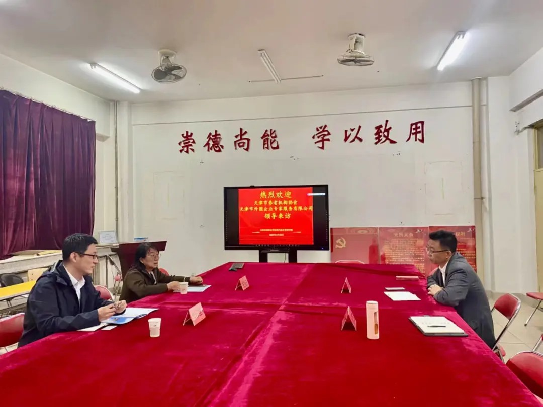 朱丽茹会长和毕欣盛主任肯定了徐院长的观点,毕欣盛主任介绍了天津市外国企业专家服务有限公司的基本概况,并就其公司“国际国内人才双循环”项目的具体细节与徐院长进行洽谈;此外,毕主任盛情邀请徐院长和智慧健康养老服务与管理专业的学生参加其公司即将在MSD举办的养老行业的招聘会。