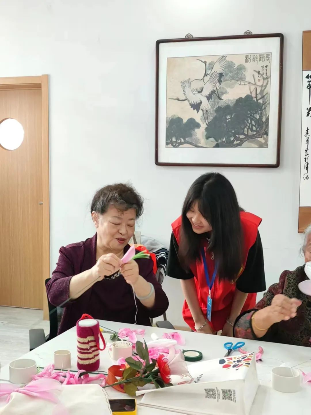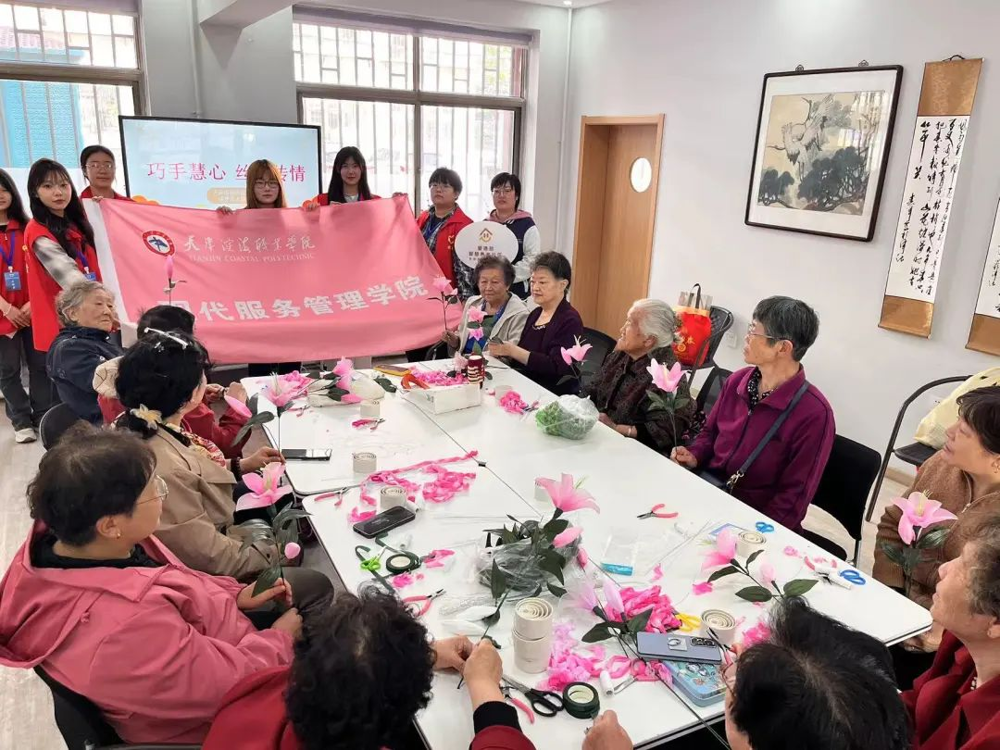 为弘扬中华民族爱老、敬老、助老、孝老的新风尚,进一步培养学生尊老敬老的职业情怀,进一步发挥文化志愿服务在社区“为老”领域的重要作用,持续聚焦老年人的精神文化需求,近日,必赢官网逐梦星火志愿服务团队智慧养老专业学生深入滨海新区新村街综合养老服务中心以及新北街贻成豪庭社区,相继开展了“巧手慧心,丝网传情”丝网花制作益老志愿服务活动,辖区30余名老年人参加了此次活动。