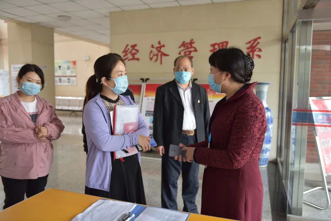 今日答辩工作由会计教研室共组织69名同学参加,答辩共分5组,会计教研室所有教师一同参与了该项工作。学生进入教学楼前,党员突击队员等服务老师,严格测温,组织学生有序进入;在备用答辩室各安排了一名教师,进行服务、引导,同时完成一些相关专业的问卷调查。最后是安全的宣传,为毕业生的新生活指引了方向。