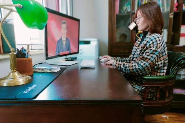 思政课教师施苓艳观看疫情防控思政大课