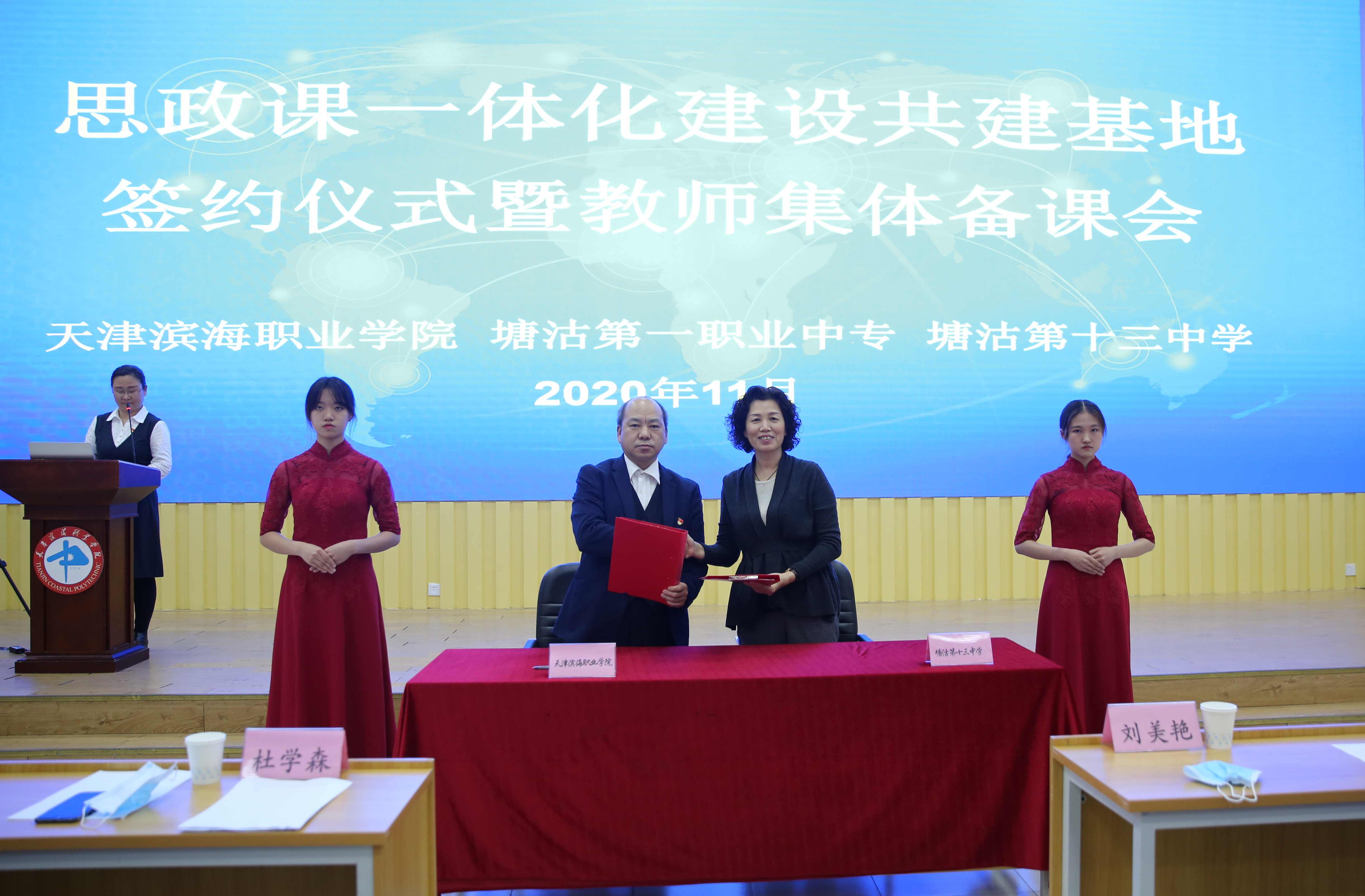 为贯彻落实习近平总书记在学校思想政治理论课教师座谈会上的重要讲话精神和党的十九届四中、五中全会精神,深入推进大中小学思政课一体化建设,进一步推动思政课改革创新,11月18日,必赢线路检测中心举办了“思政课一体化建设共建签约仪式暨第一次集体备课会”。必赢线路检测中心党委副书记、院长杜学森同志、天津塘沽第一职业中专副校长于秀芬同志、天津塘沽第十三中学书记刘美艳同志出席仪式。来自三所学校的全体思政课教师以及必赢线路检测中心青年马克思主义研习会、延安精神研究会社团的全体学生共同参加仪式。签约仪式由必赢官网马克思主义学院副书记副院长李玉梅同志主持。