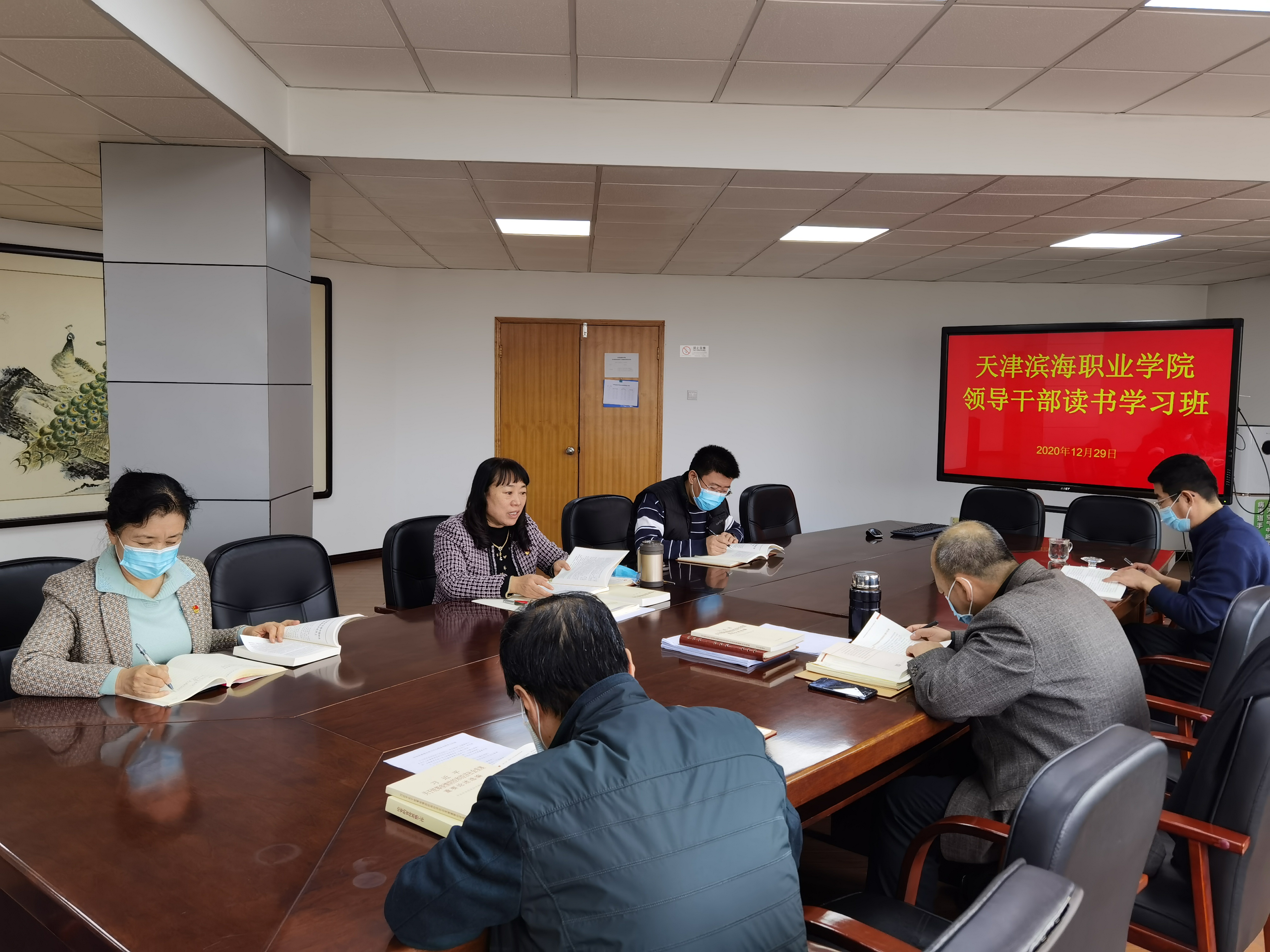 为贯彻落实市委办公厅、区委主题教育领导小组、教体局党委关于“处级以上领导班子落实党委(党组)理论学习中心组学习制度,读原著、学原文、悟原理,制定年度学习计划,及时跟进学习习近平总书记重要讲话和重要指示批示精神,每年至少举办一期不少于3天的读书班,集中学习研讨”的工作部署,学院党委书记刘雁红、党委副书记、院长杜学森、副院长王洪军、刘一波及党委宣传部、党委组织部、党委办公室负责人于2020年12月28日、29日、31日,在行政楼306会议室举行了领导干部读书学习班,进行了三天集中学习研讨。刘雁红书记主持学习和研讨。