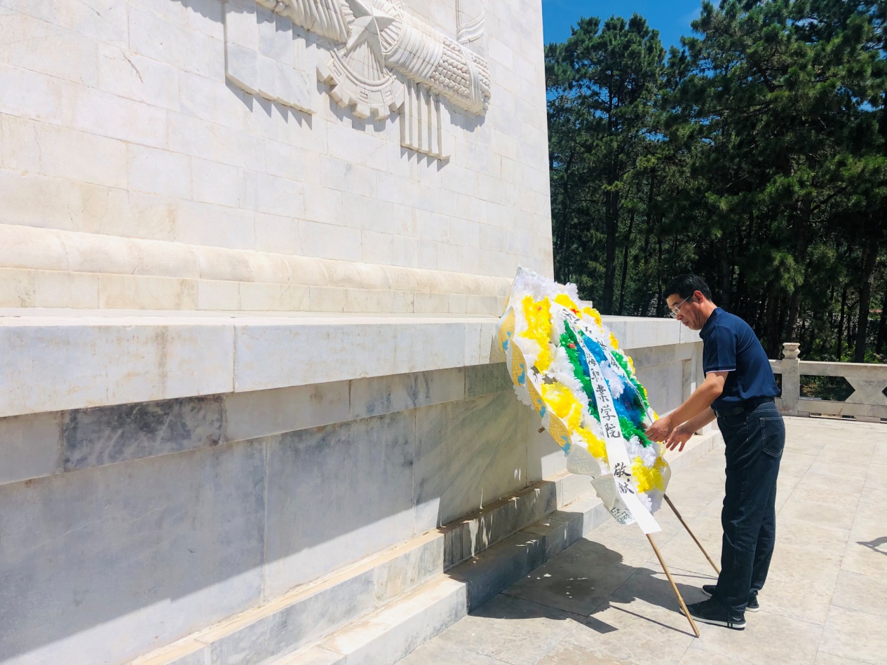 盘山烈士陵园庄严肃穆,“光荣烈士永垂不朽”八个镏金大字光芒耀眼、熠熠生辉。全体党员教师来到烈士纪念碑前,共同奏唱国歌,列队肃立,默哀致敬。后勤资产党支部书记王俊杰、经济管理系党支部书记徐公仁代表党员教师向革命烈士纪念碑敬献花圈,刘一波副院长整理了花圈挽联,全体党员教师相继走到纪念碑前,绕行纪念碑一周,深情瞻仰烈士纪念碑,缅怀革命先烈的丰功伟绩,表达对烈士的崇高敬意和缅怀之情。