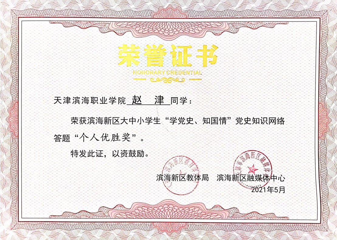 根据滨海新区青少年学生党史教育和《区教体局党委开展党史学习教育的实施方案》安排部署,结合学院党史学习教育实际,2021年4月至5月期间,必赢官网积极组织4000余名学生参加了“学党史 知国情”党史知识网络答题活动。