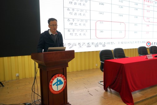 学院招生就业指导中心主任马辉围绕学院2021年招生工作总体情况进行分析,从招生政策、形势研判、招生特点、录取情况、创新举措等方面深入剖析学院招生工作的形势与发展趋势,并提出了今后招生工作的具体举措与建议。
