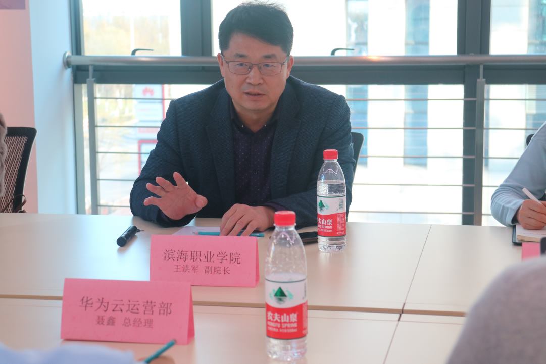 王洪军副院长在听取了华为在产业学院合作、创新育人机制等方面的各项经验后表示,华为公司敢于在核心技术与标准上与国际公司竞争,是中国企业的脊梁,学院与华为在三方面有合作空间:首先是加强师资培养,与华为这样的行业龙头企业开展深入的校企人员互通交流;第二是积极对接华为1+X证书在相关专业的实施;第三是推进华为产业学院的建设,革新育人模式,为滨海新区的重点信息技术产业培养技术技能型人才。华为滨海基地总经理聂鑫表示,将积极与学院在产业学院建设、信创任务落实、1+X证书等方面开展合作。