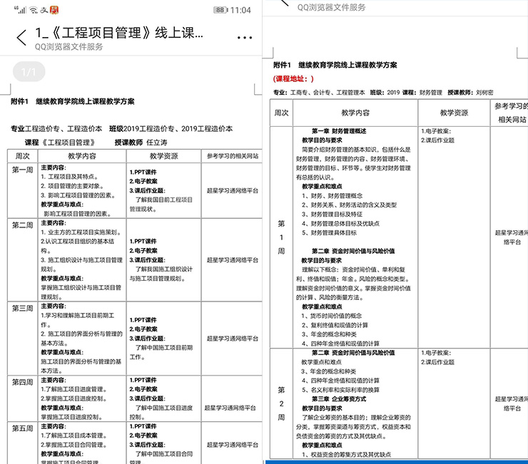 任课教师对教学计划做出整体的规划和安排,明确了授课方式和教学目标等内容。授课教师做了充足准备,电脑、手机,摄像头齐上阵,课件、资料、资源库一样也不落!教学过程中主要使用的教学平台包括超星学习通、中国大学MOOC、国家开放大学,主要使用的社交通讯工具包括微信、QQ等。