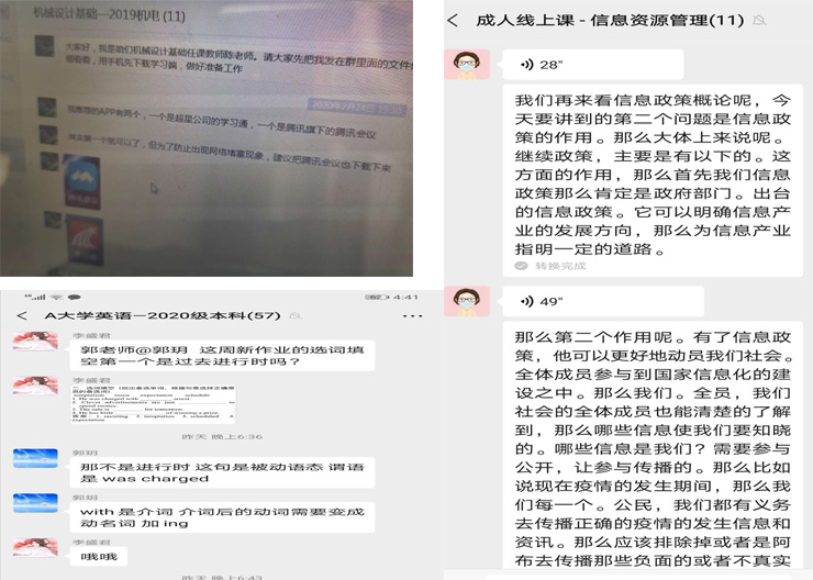 为保证继续教育教学进度和教学质量,为确保线上教学工作的科学、规范、有序开展,继续教育学院成立了2020年春季教学工作督导组,加强线上教学管理与指导。对第一批次开课的27门线上课程建立微信群,设置专人进行督导。