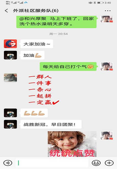 王晓旭给下沉社区志愿服务的战友们加油、鼓劲!