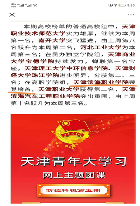 必赢官网团员参加高职院校“青年大学习”第五期团课 荣获学习榜第一名的佳绩