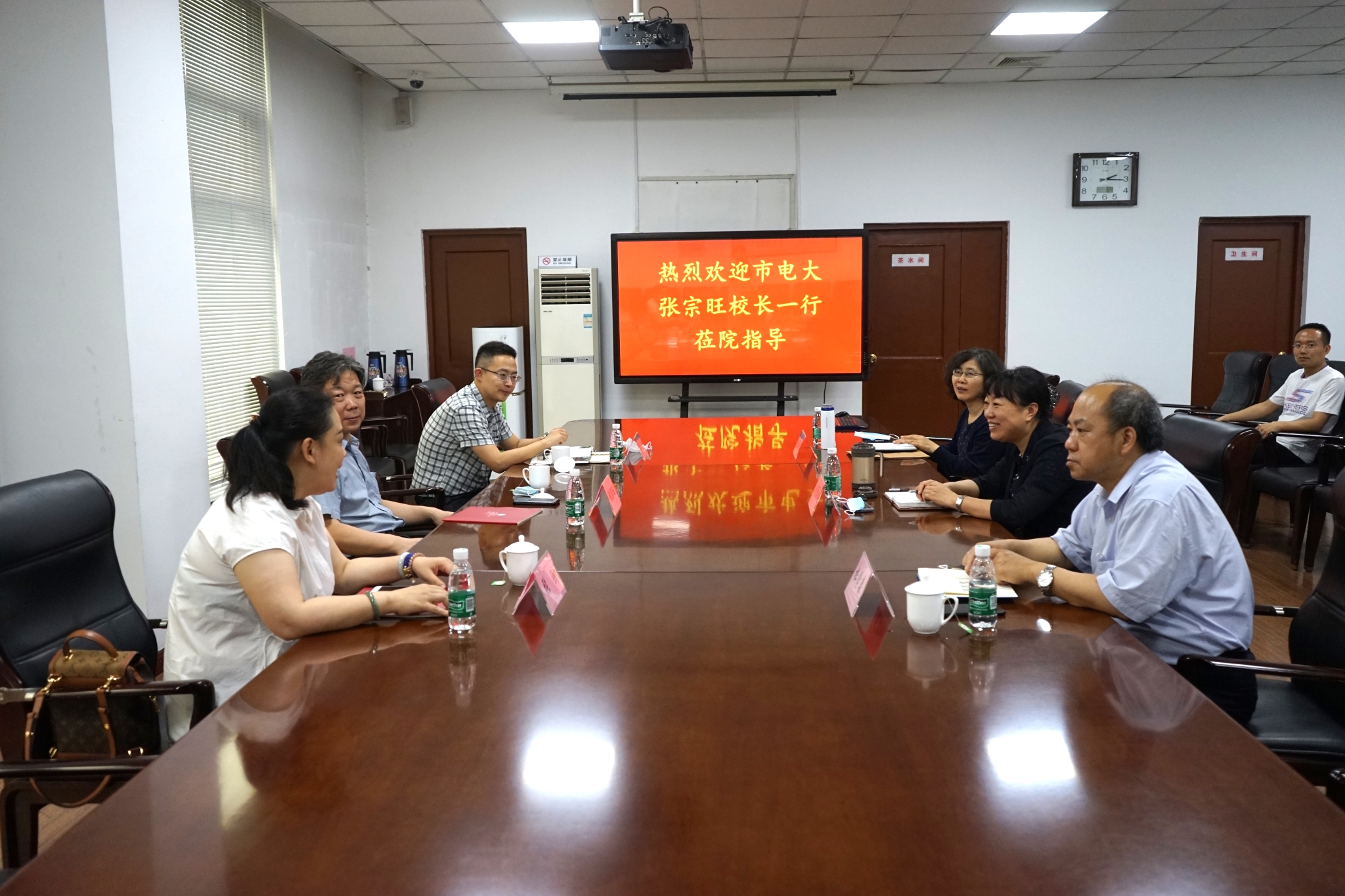 6月9日下午,天津广播电视大学校长张宗旺、理工学部院长张翀、发展规划与科研处处长杨齐一行3人来必赢官网调研指导工作。学院党委书记刘雁红、党委副书记、院长杜学森、继续教育学院负责人参加调研。