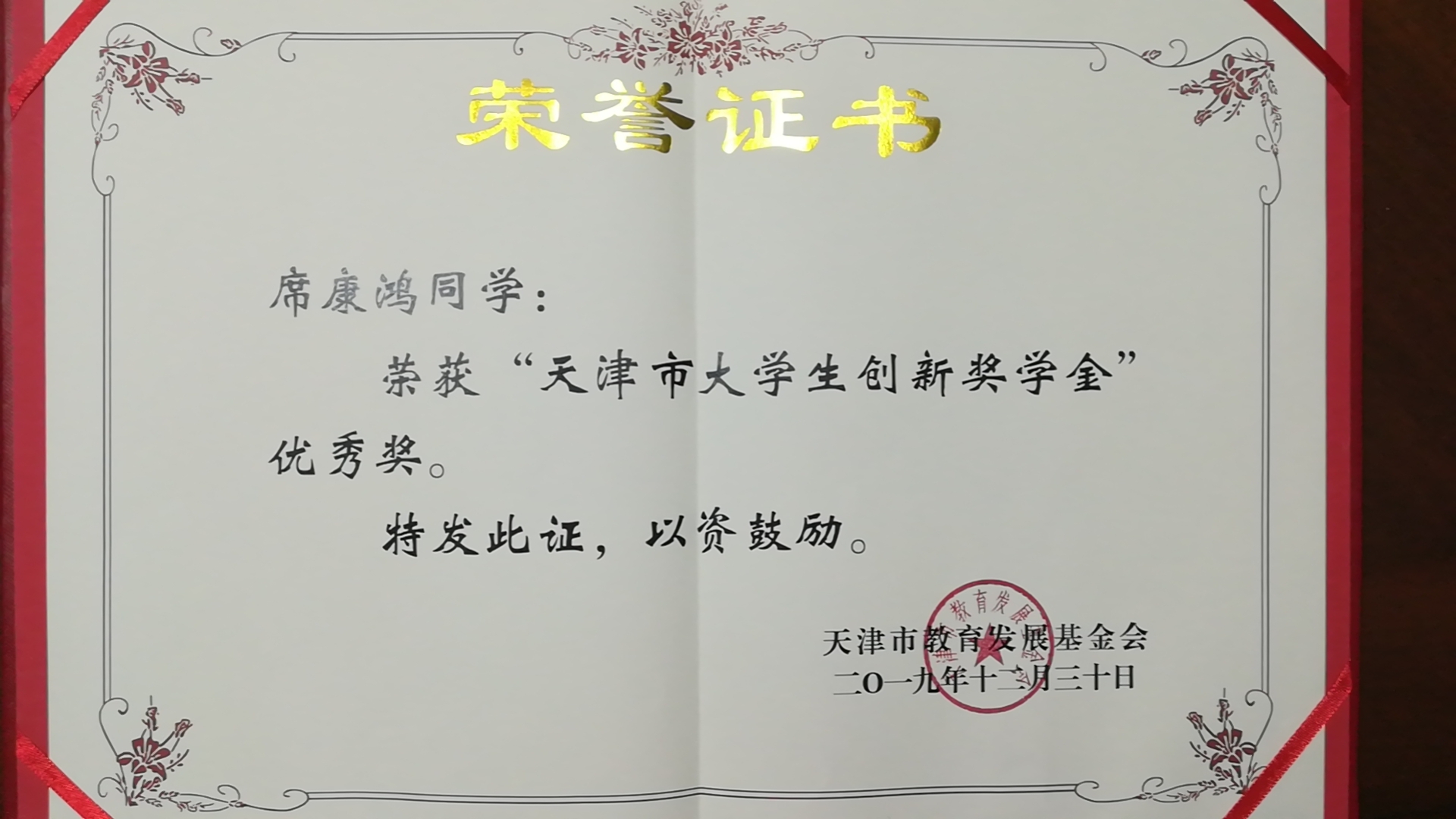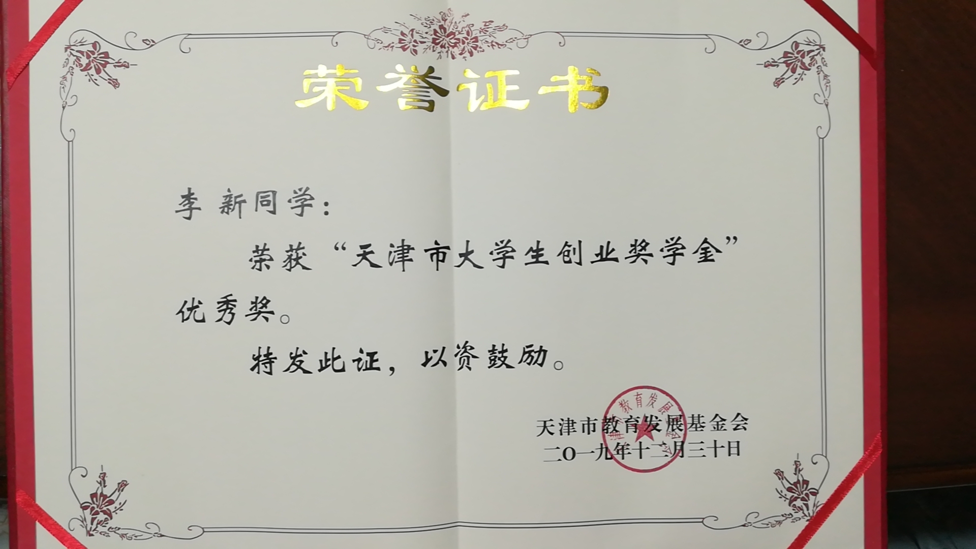 喜讯:必赢官网2名同学荣获 2019年天津市大学生创新创业奖学金