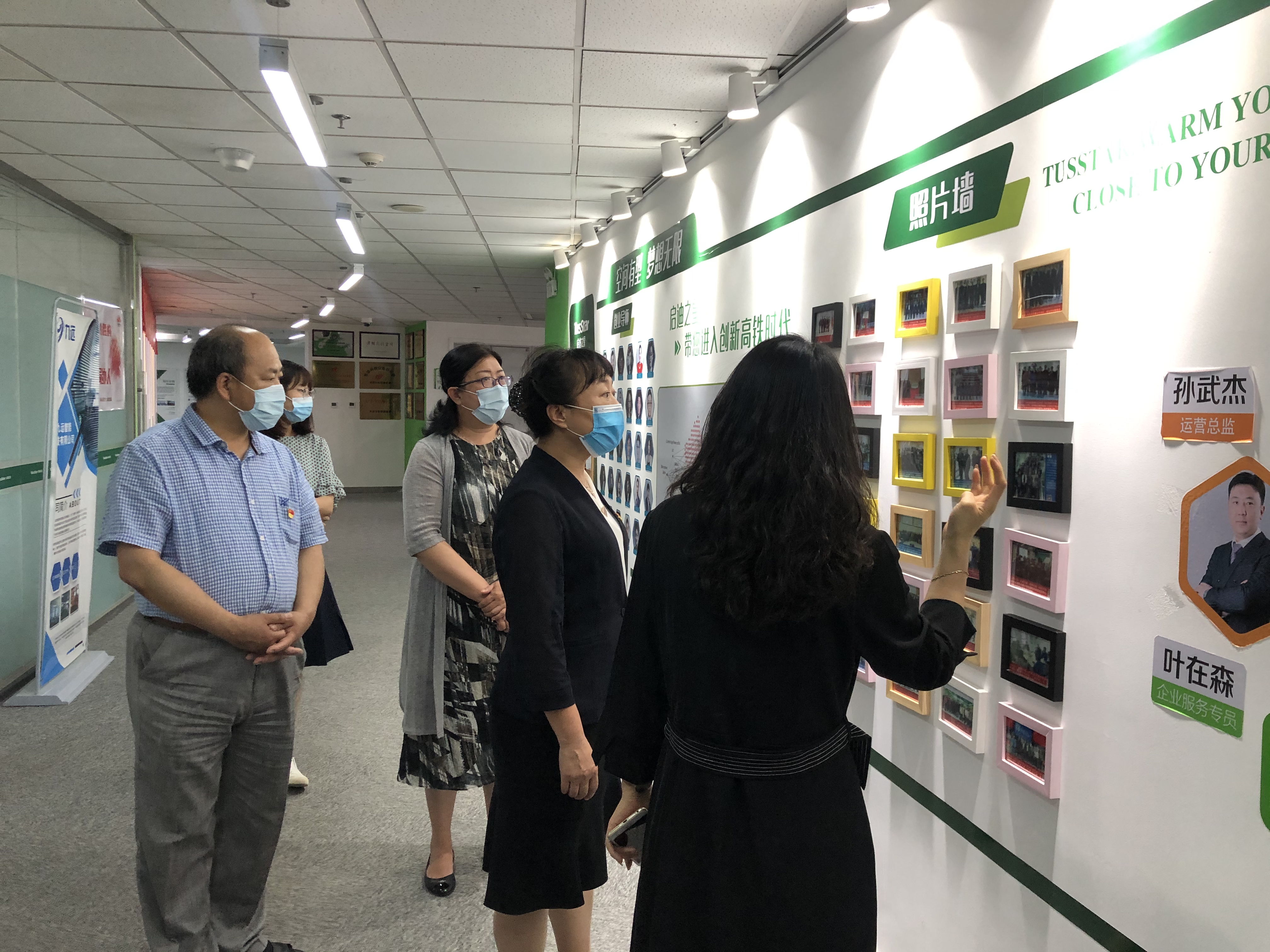 刘书记、杜院长一行在启迪之星刘小杰副总经理的带领下了解了启迪之星的历史发展沿革,参观了孵化器有限公司办公室、休息室、专家室等相关配套设施。