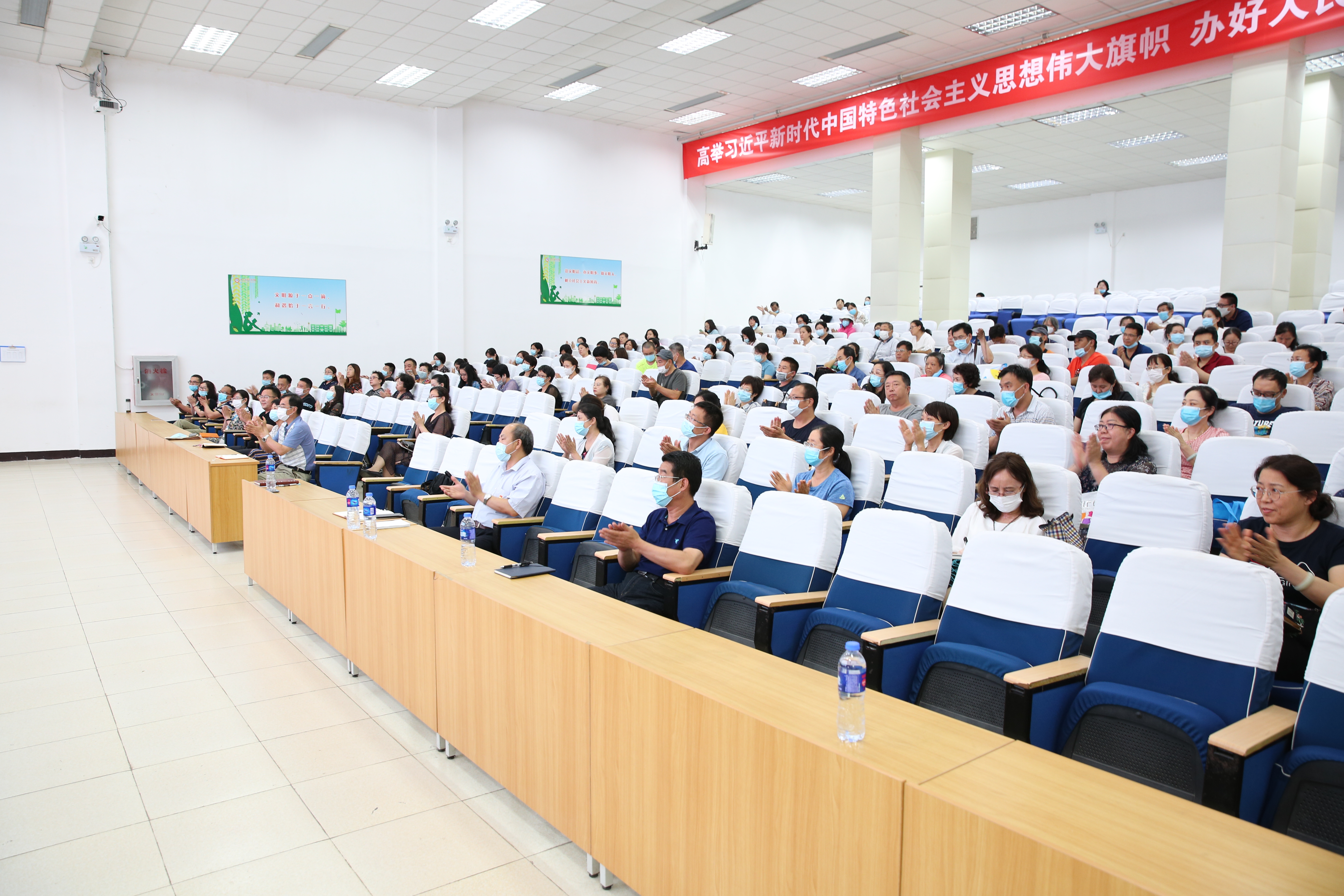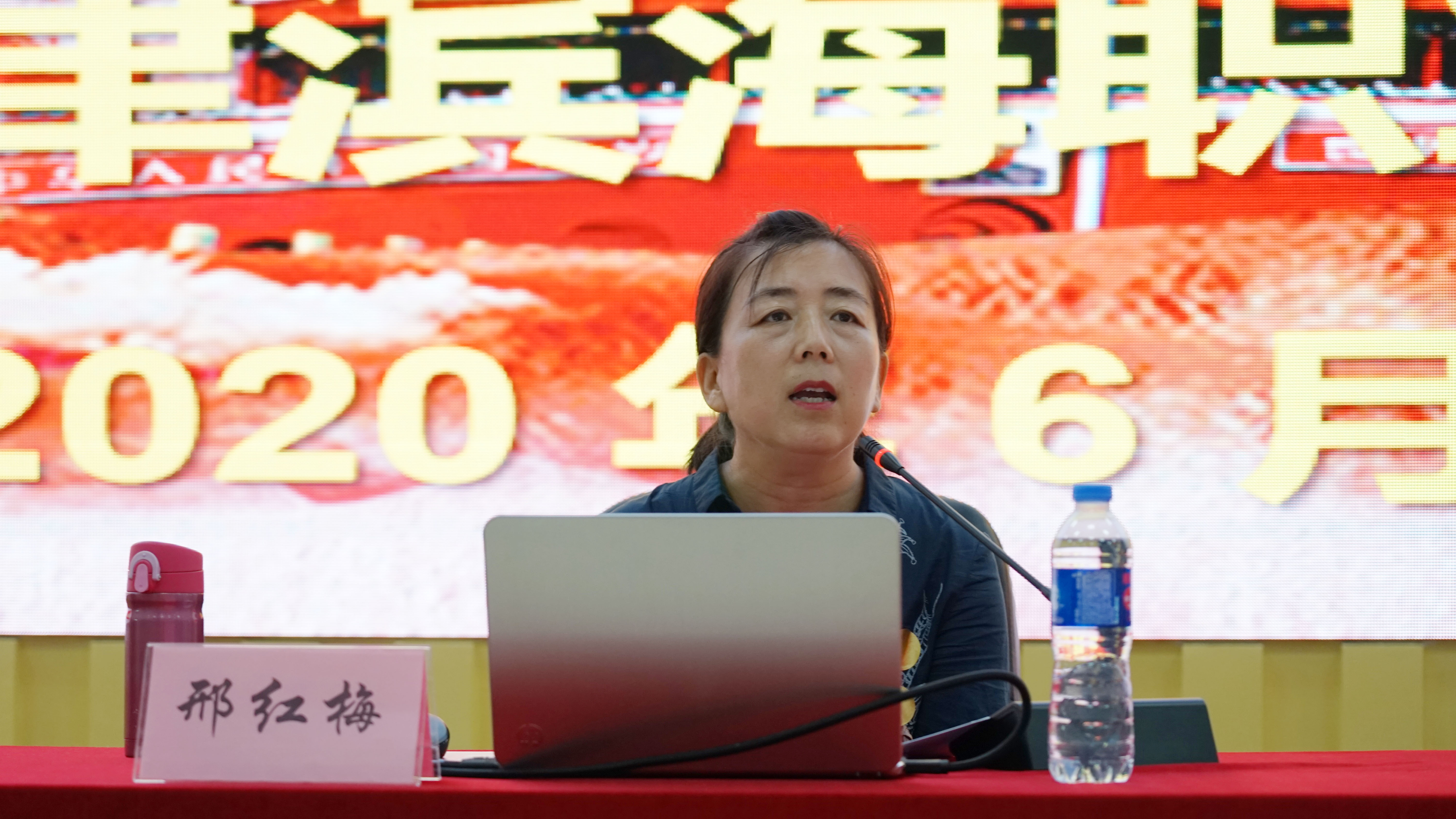 为深入学习贯彻习近平新时代中国特色社会主义思想,坚决贯彻党中央关于脱贫攻坚的部署要求,根据滨海新区教体局和学院党委部署,2020年6月23日下午,学院党委邀请天津科技大学马克思主义学院邢红梅教授,以“确保如期打赢脱贫攻坚战”为主题,为全院教师代表作主题宣讲。学院党委书记刘雁红、党委副书记、院长杜学森、副院长王洪军、刘一波及部分中层干部、教研室主任及教职工代表共200余人参加。主题宣讲会由学院党委书记刘雁红同志主持。