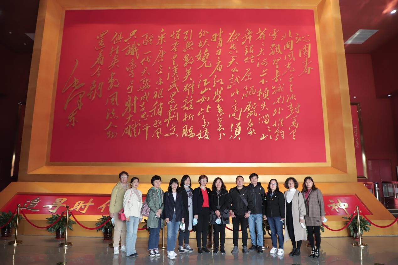 图-1信息工程系党支部全体党员在毛主席诗词处合影