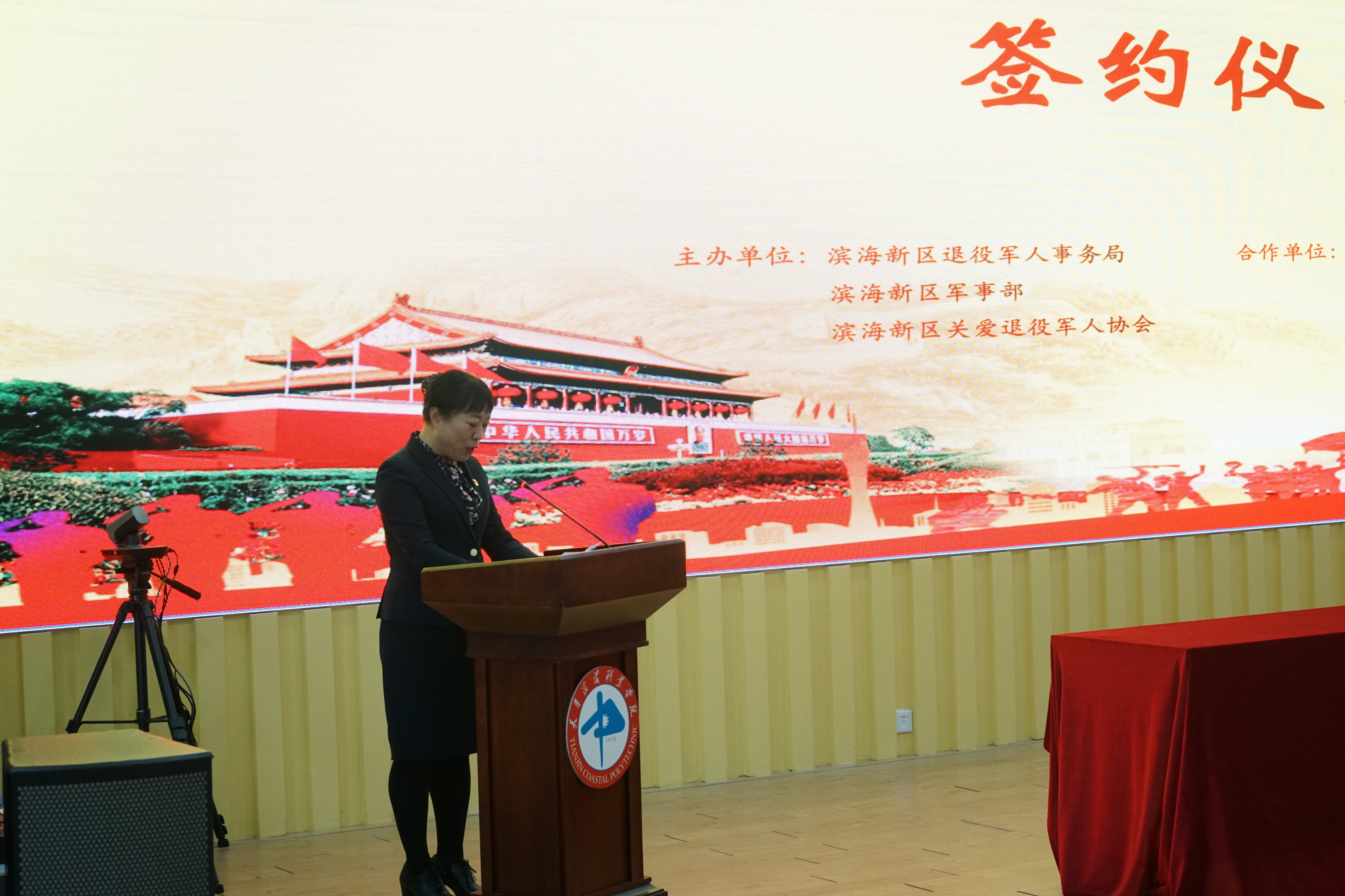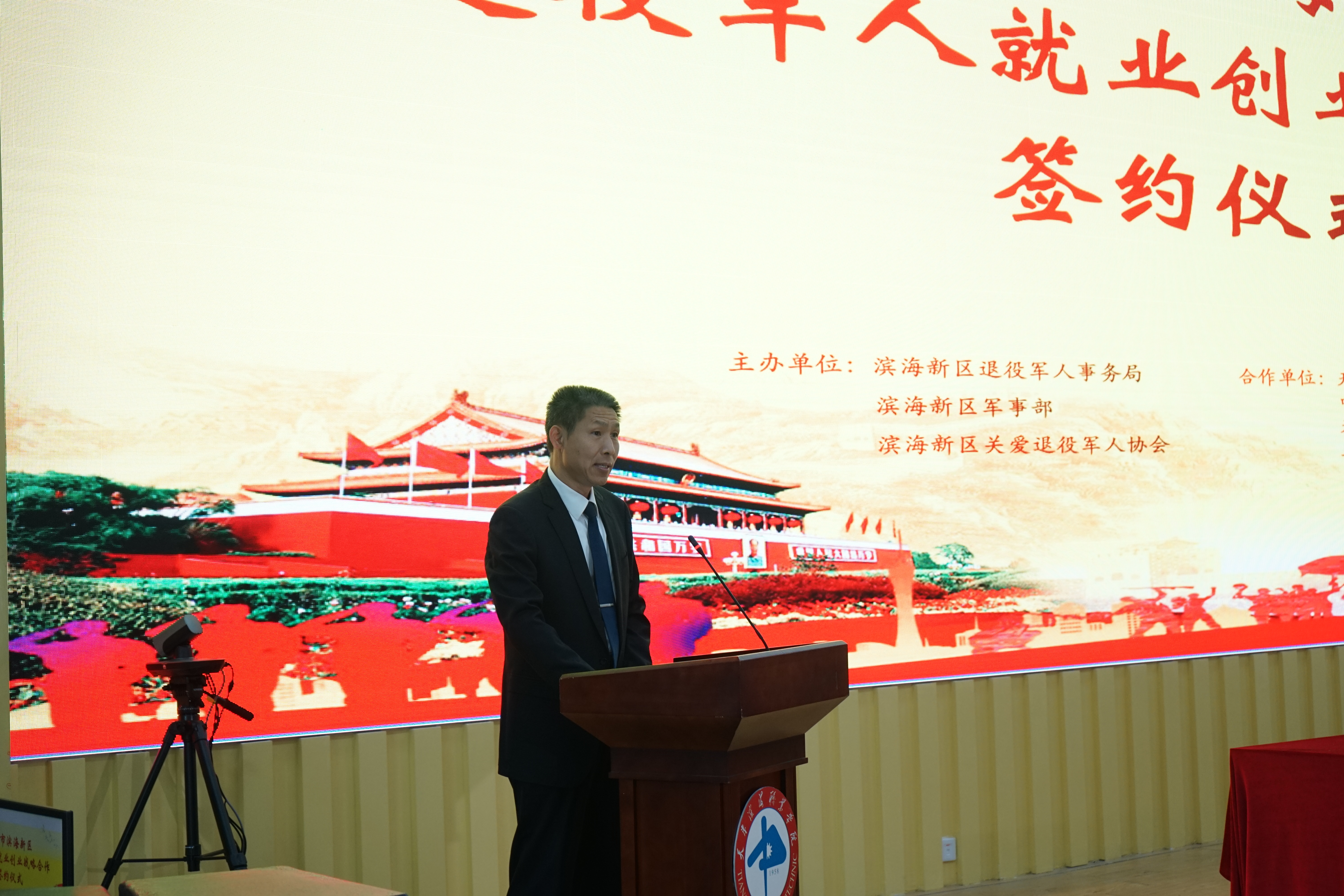 会上区退役军人事务局局长张庆生致辞,滨海职业学院、中铁上海工程局集团第四工程有限公司、天津博迈科海洋工程有限公司、玉禾田环境发展集团股份有限公司天津分公司等4家单位领导发言。