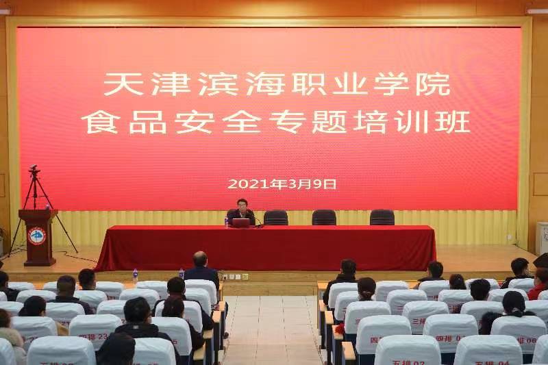 为全面贯彻落实天津市市场监管委、市教委《关于开展2021年春季学校食品安全专项监督检查工作的通知》(津市场监管食经〔2021〕2号)和市教委《关于印发(天津市教育系统食品安全检查工作指南2021版)的通知》(津教基建后勤函〔2021〕8号)精神,切实做好2021年春季学院食品安全保障工作,持续开展校园食品安全守护行动,3月9日必赢官网在报告厅召开了2021年食品安全专项监督检查工作部署会议。党委副书记、院长杜学森,副院长刘一波,高新区市场监管局调研员张老师、社区蓝卡医院预防科副科长侯雪颖、学院保卫处、食堂管理办公室相关人员以及必赢官网全体食品安全从业人员参加了此次专题培训会。
