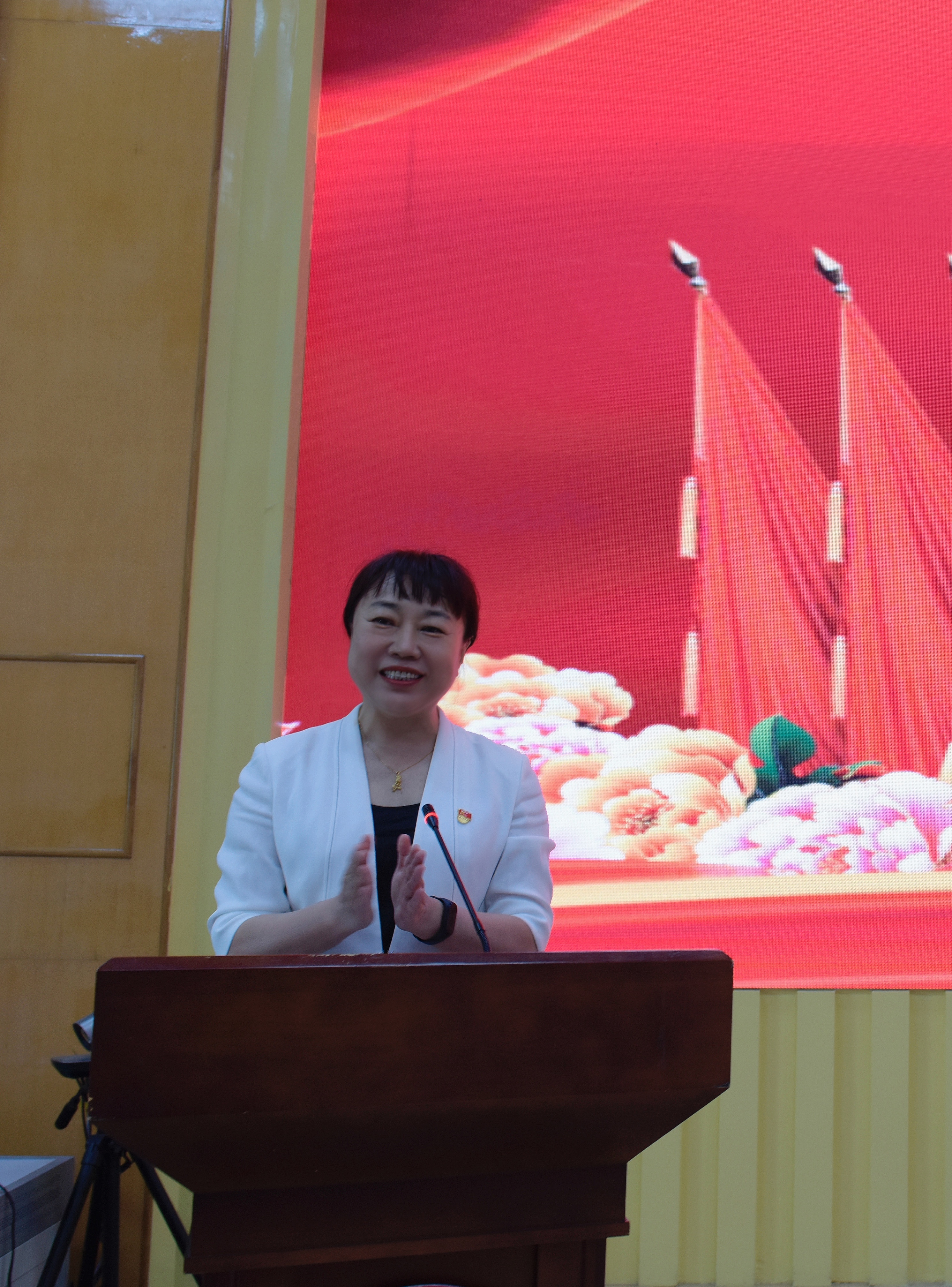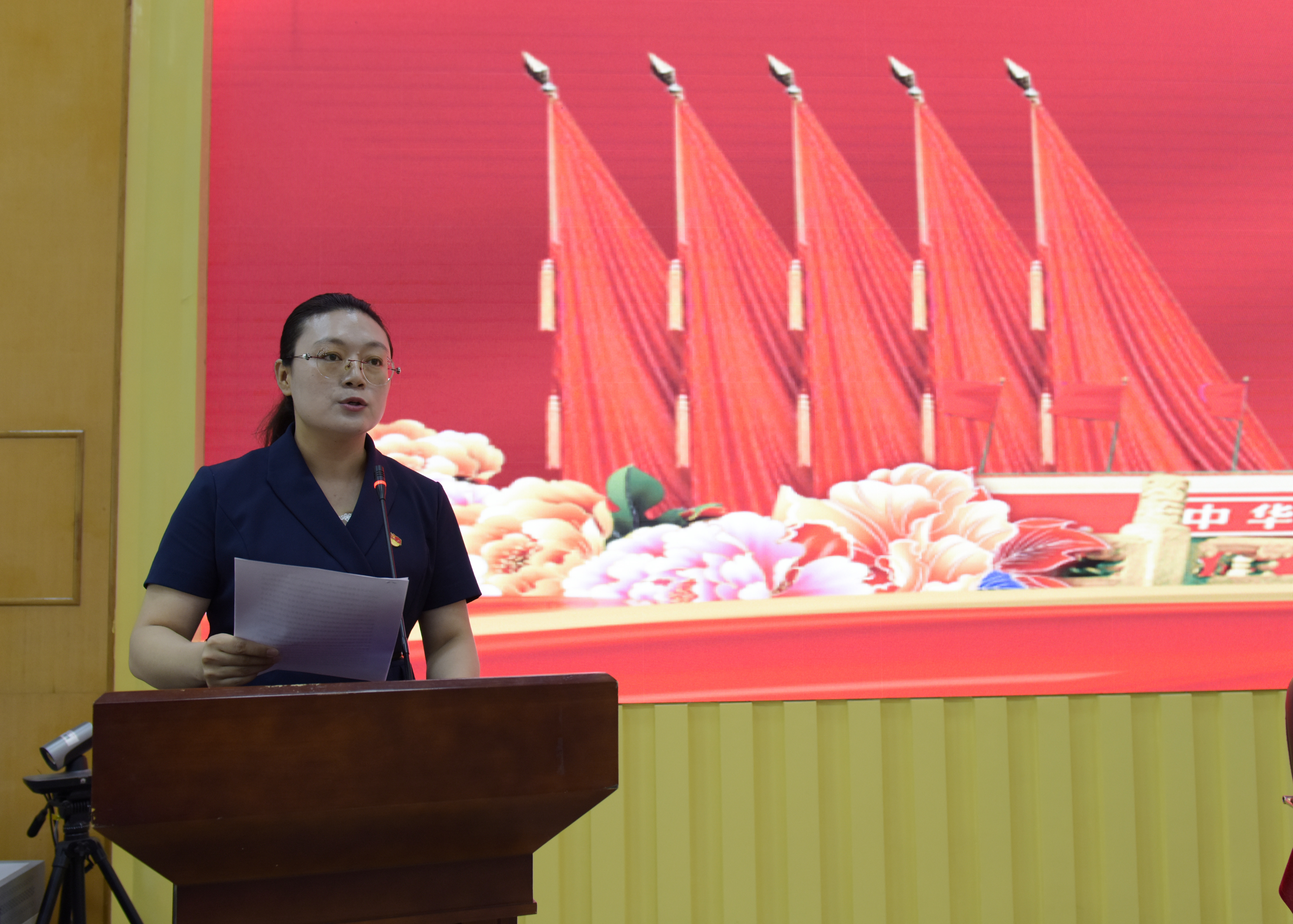 党委书记刘雁红同志代表学院党委讲话。她说:中国共产党建党百年来在中国革命、建设和改革的历史进程中,带领全国各族人民谱写了中华民族从站起来、富起来到强起来的历史篇章。党的十八大以来,以习近平同志为核心的党中央,提出一系列治国理政新理念、新思想、新战略,凝聚成了习近平新时代中国特色社会主义思想,开创了党和国家事业发展的新局面,开辟了中华民族伟大复兴的新纪元。100年的历史和实践已经雄辩地证明,中国共产党不愧为伟大、光荣、正确的党,不愧为中国特色社会主义事业的坚强领导核心,只有在中国共产党的坚强领导下,坚定不移地走中国特色社会主义道路,国家才能富强,民族才能振兴,人民才能幸福。