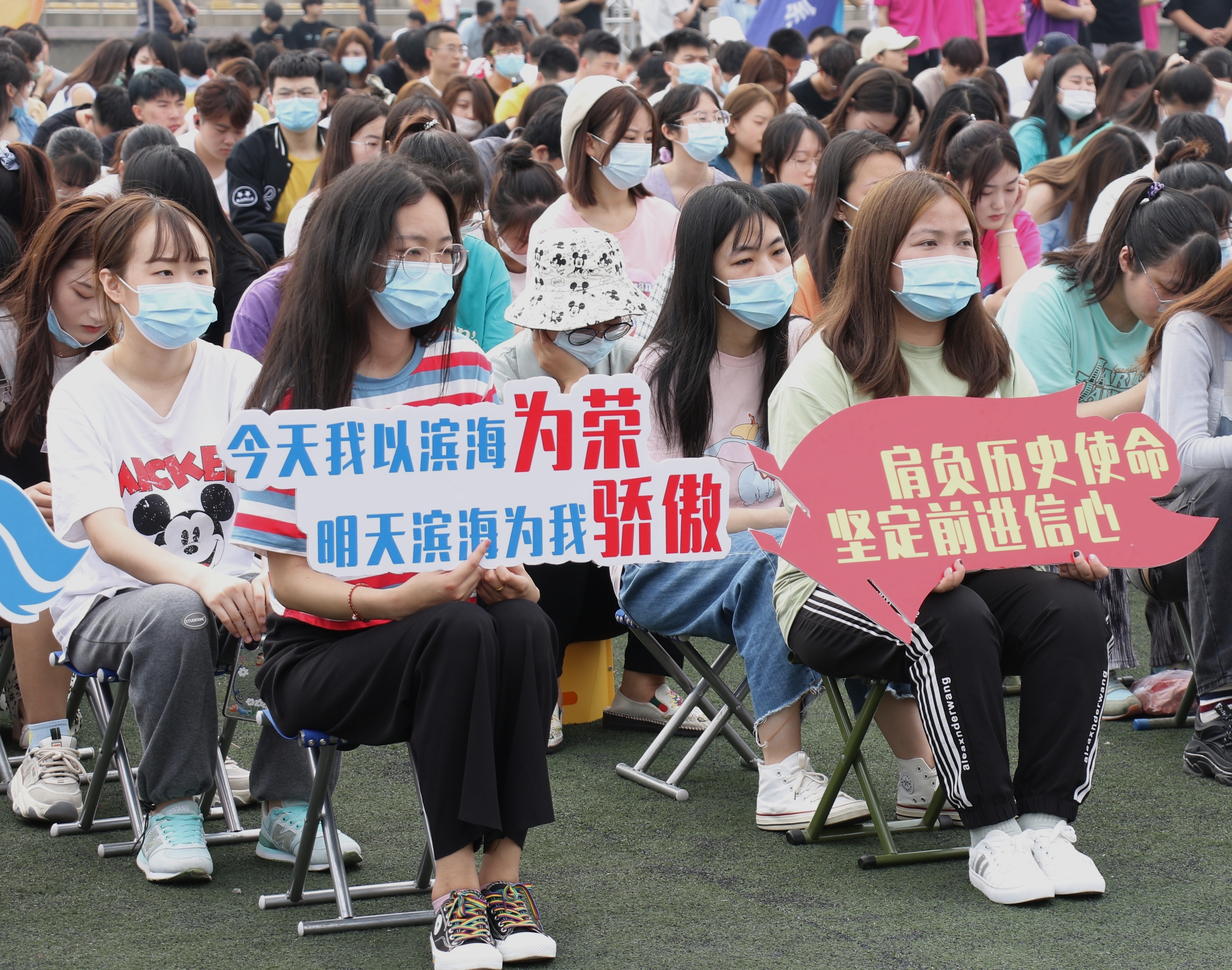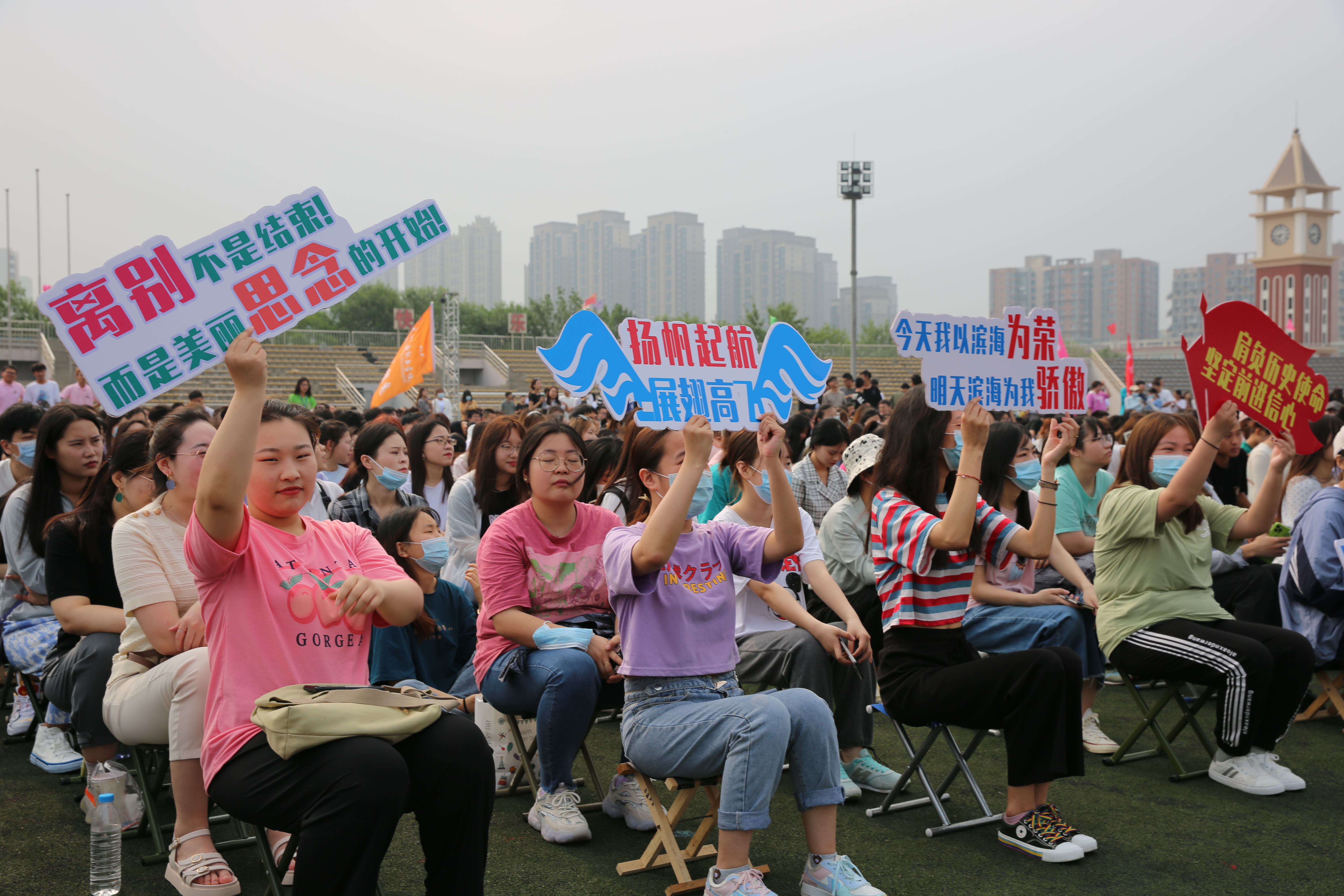 教师代表、建筑工程系孙鑫老师向即将踏上新征程的毕业生们寄予了真诚的祝福。她希望同学们一要永远高扬理想之帆;二要面对困难学会微笑;三要面对未来充满信心;四要面对社会多几分责任,并表示母校永远是大家坚实的后盾。毕业生代表原学生会主席张文秀同学代表全体毕业生发言,感谢几年来老师们的培养和照顾,回顾了在母校的成长历程及对未来的美好展望。他表示要秉承“崇德尚能,学以致用”的校训,以饱满的激情,以滨海学院人特有的姿态,去投身社会,服务社会,将青春能量献给最美的祖国!现场毕业生以铿锵有力的誓词,朝气蓬勃的姿态庄严宣誓,向母校作出用青春无悔的实际行动践行铮铮誓言的郑重承诺。