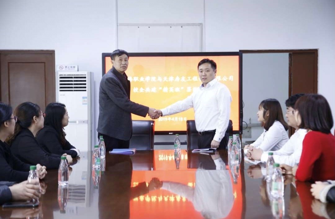 2019年7月-12月,天津房友工程咨询有限公司在50名“精英班“学生中优中选优,遴选出28名学生参加企业的顶岗实习,企业与学院、学生签署实习三方协议。