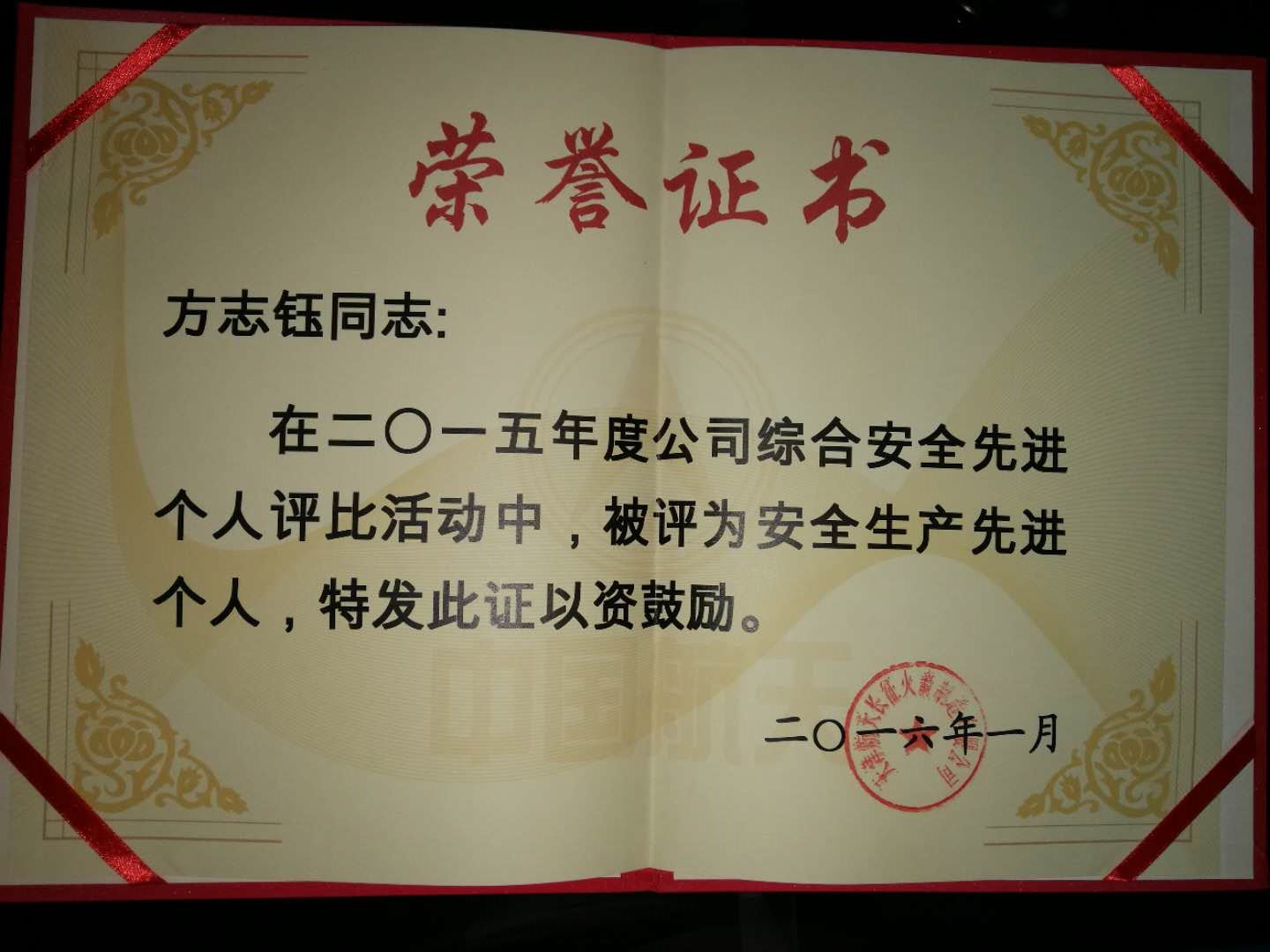 在工作中,踏实肯干,锐意进取,不断改革创新,多次改革创新工作中的工装夹具,受到单位同事和领导的好评,并荣获公司级的先进工作者称号。