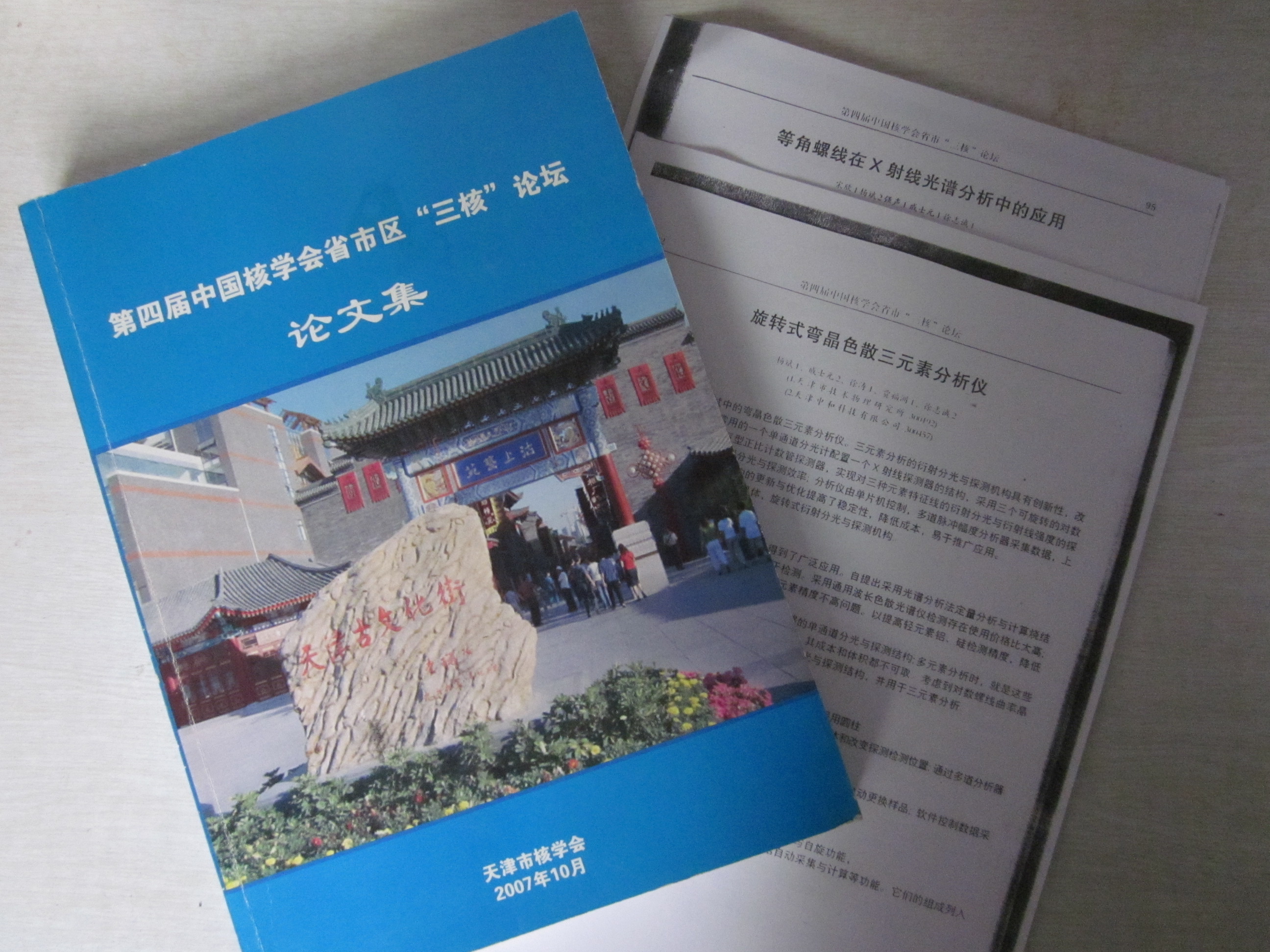 2007年10月在第四届中国核学会省市区“三核”论坛上同天津市技术物理研究所发表了《旋转式弯晶色散三元素分析仪》《等角螺线在X射线光谱分析中的应用》两篇论文。