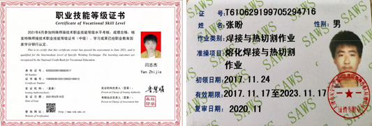 本专业学生经过学习,方便获取焊接与热切割作业操作证书、焊接机器人编程与维护职业技能等级证书和特殊焊接技术职业技能等级证书。