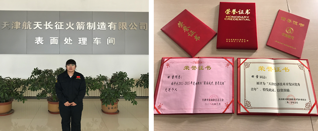 田雪,2011届毕业生。现就职于天津长征火箭制造有限公司表面处理车间,从事火箭整件零件的表面处理工作,曾担任阳极氧化班组班组长4年,现在是一名生产计划调度员。参与长征三号、长征五号以及长征七号等系列运载火箭的表面处理工作。工作突出,获得多项荣誉证书。
