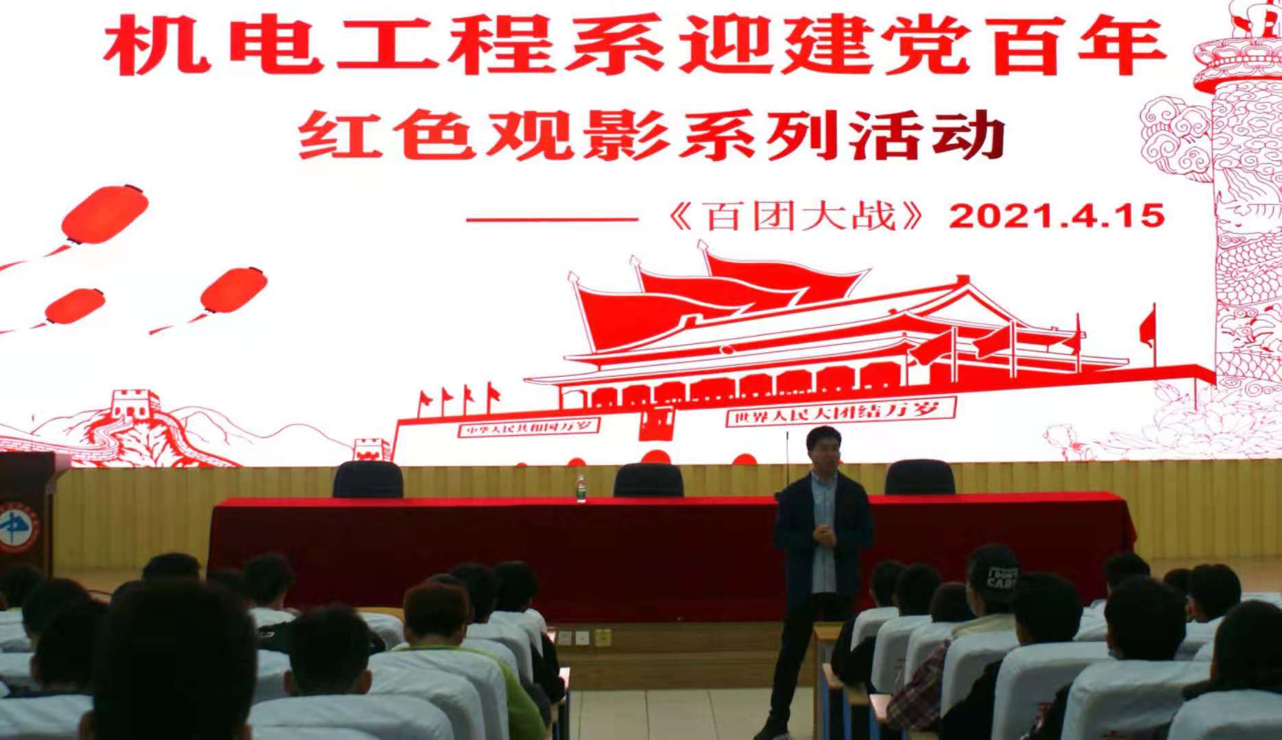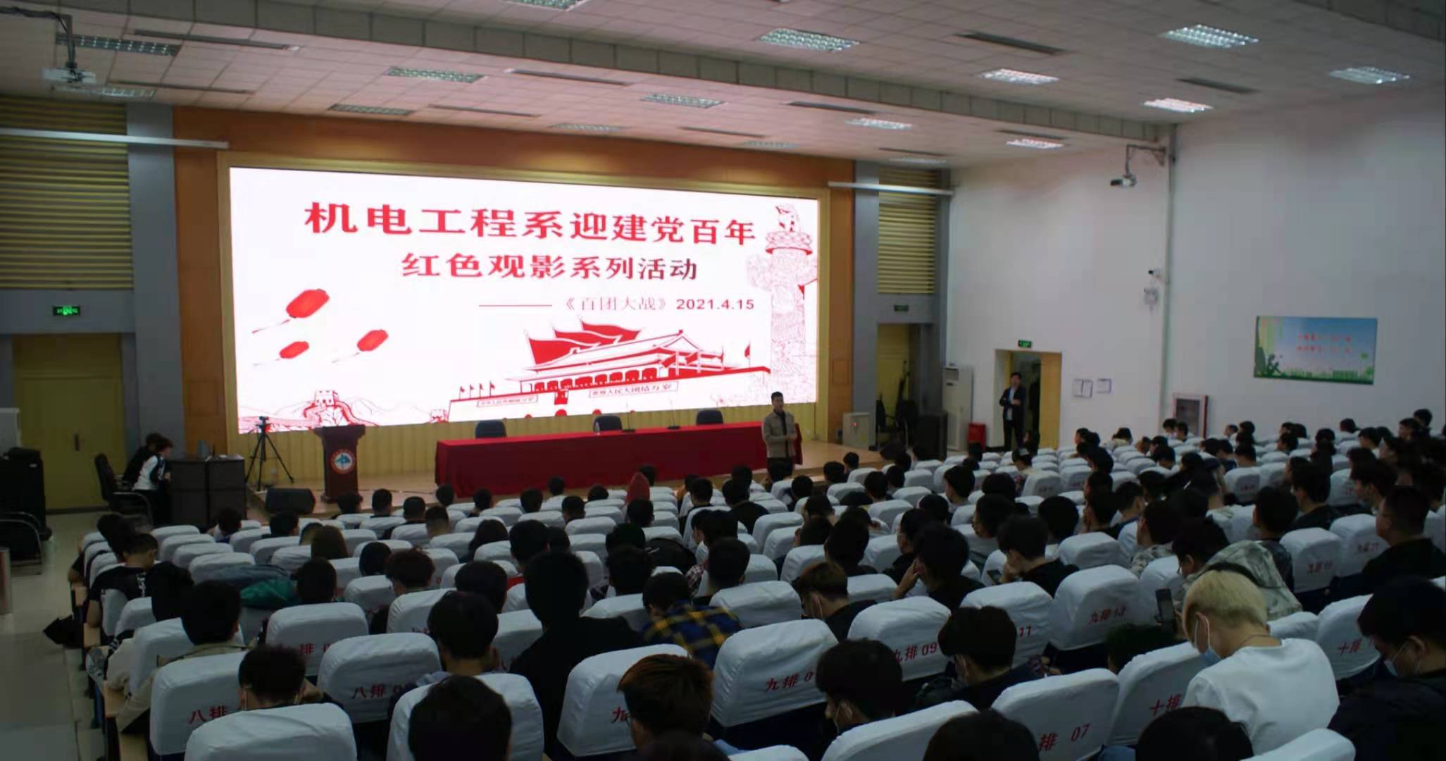 建党百年来临之际,机电工程系通过组织大家观看《百团大战》红色影片,重温党的革命历史和精神财富,让我们不忘初心、继续前进,通过革命历史题材影片的形式再现历史,催人奋进、发人深省、给人启迪,弘扬社会主义核心价值体系,重温党史,传承革命精神坚定理想信念。