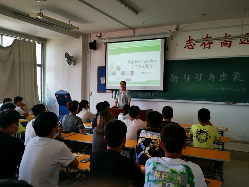 为更好地促进202 1 级新生了解所学专业,坚定学习信心,20 2 1 年 9 月2 2 日下午,机电工程系在主教学楼各教室举办了新生专业教育主题活动,机电一体化技术、电子信息工程技术、电气自动化技术、焊接及自动化技术、工业机器人技术五个专业的全体新生、辅导员、相关专业教师、系部领导参加了此次活动。