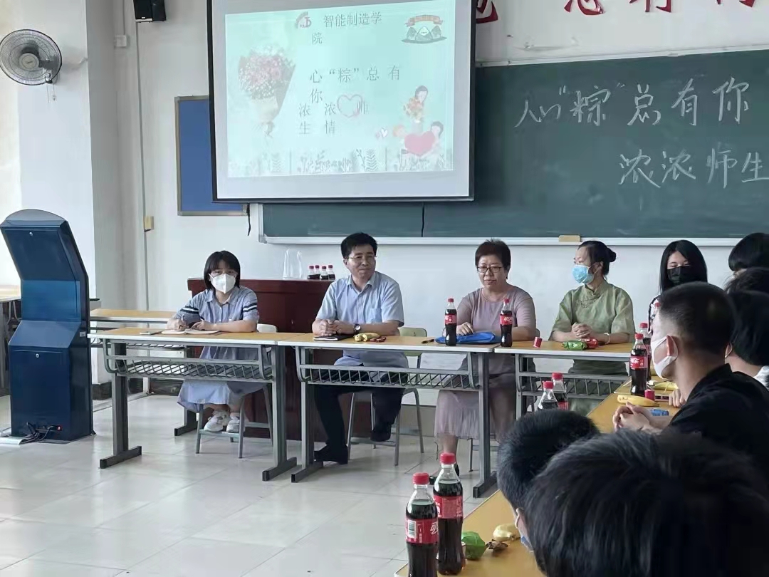 为了传承和弘扬优秀民族文化,传递学院对同学们的关心关爱,5月30日,智能制造学院举行“心‘粽’总有你,浓浓师生情”茶话会。智能制造学院陈天祥副主任、沈艳辉副主任、王中媛副书记、辅导员李玉老师及学生代表40余人一同参加。