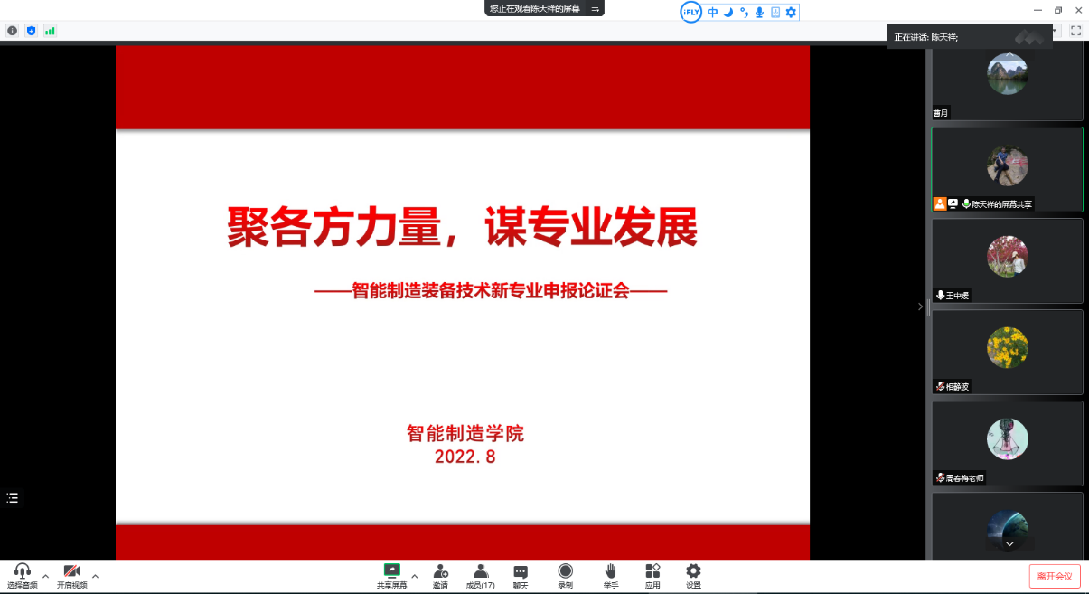 8月21日,智能制造学院线上召开“智能制造装备技术” 专业建设专家论证会。论证会邀请了中德栋梁集团工业与教育研究院院长刁秀珍教授、山东省高校教学名师刘敏教授、康师傅控股集团康饮事业部设备工程管理处于华忠处长参加论证,智能制造学院陈天祥院长、沈艳辉副院长、王中媛副书记和新专业申报负责人解广娟老师以及五个专业的教研室主任、学院支部委员会委员参加了此次论证会,会议由陈院长主持。